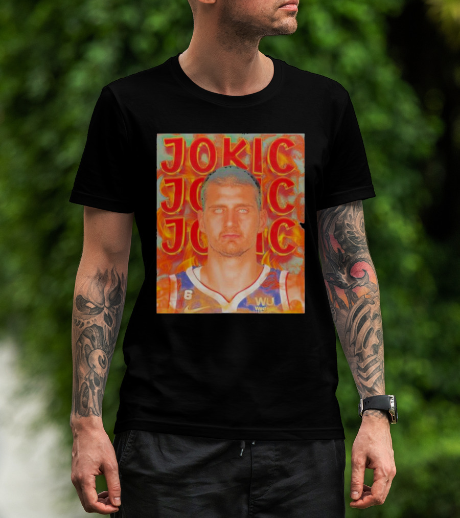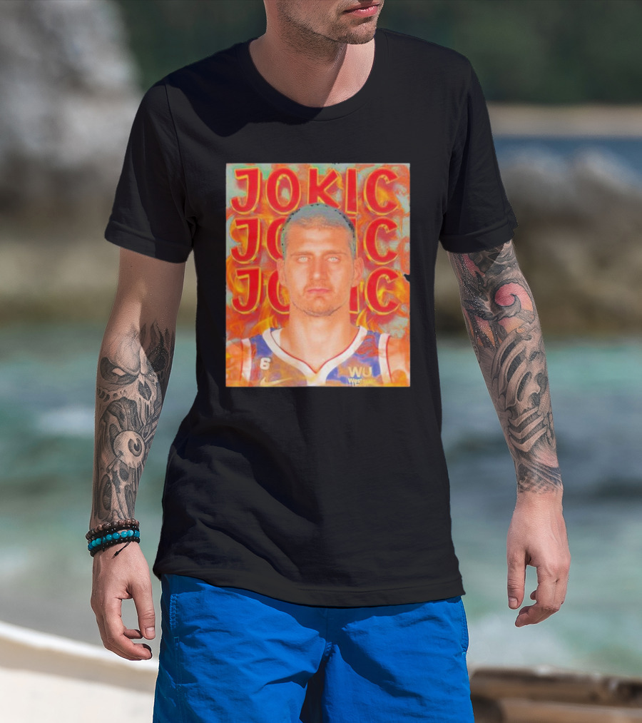 The Jokic Fire Flames Photo Basketball T-shirt is designed for everyday wear and a consistent fit. Fabric is pre-shrunk ring-spun cotton with durable stitching. See the size chart below for exact measurements.