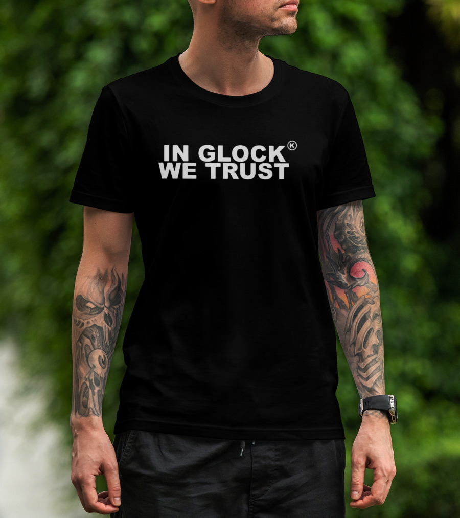 The IN GLOCK WE TRUST T-shirt is designed for everyday wear and a consistent fit. Fabric is pre-shrunk ring-spun cotton with durable stitching. See the size chart below for exact measurements.