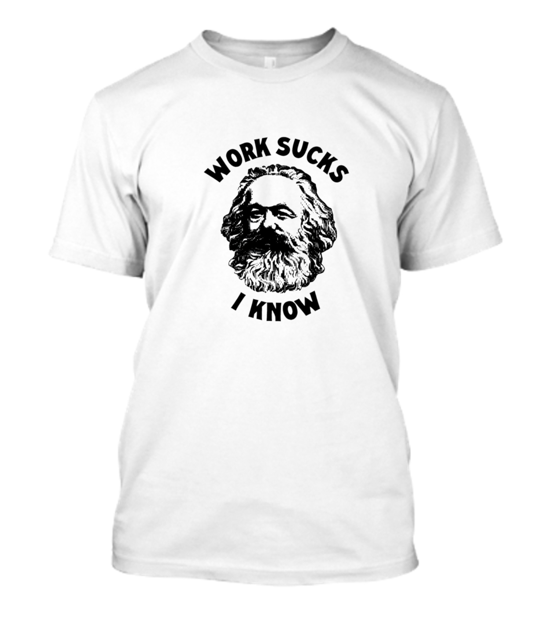 The Karl Marx Work Sucks I Know T-shirt is designed for everyday wear and a consistent fit. Fabric is pre-shrunk ring-spun cotton with durable stitching. See the size chart below for exact measurements.