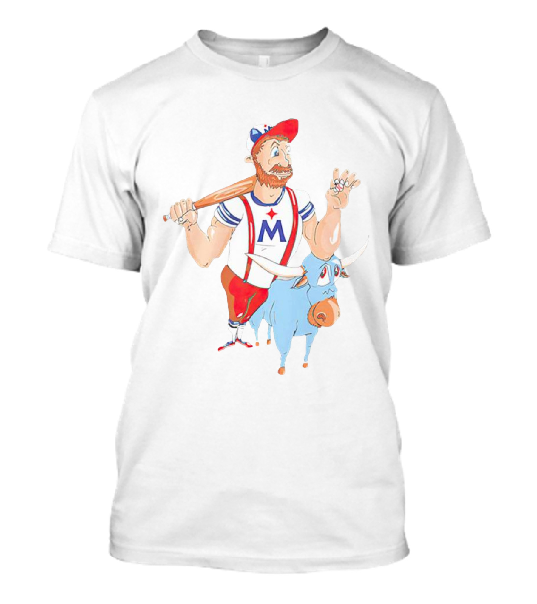 Paul Bunyan Baseball Cartoon With Babe The Blue Ox And Baseball Bat T-Shirt