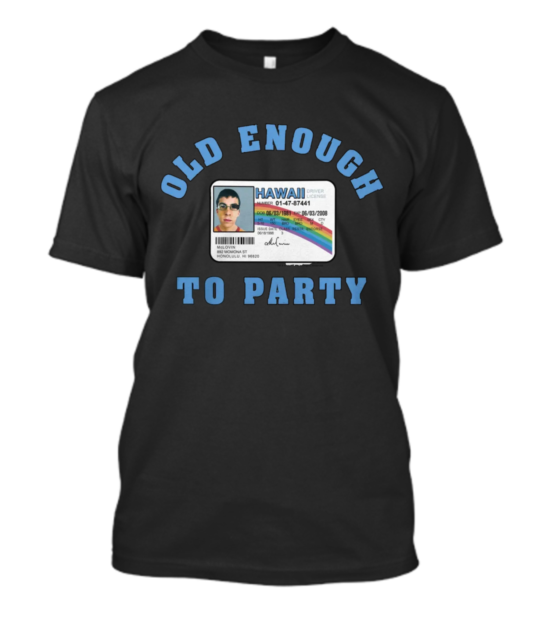 Superbad Hawai'i Driver License Old Enough To Party McLovin 06/03/1981 T-Shirt