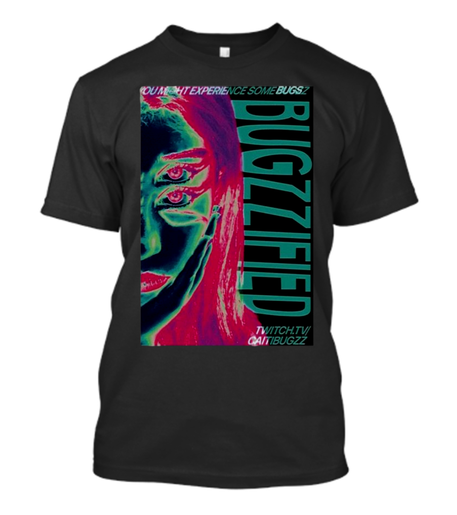 The YOU MIGHT EXPERIENCE SOME BUGZZ BUGZZIFIED TWITCH.TV/CAITIBUGZZ T-shirt is designed for everyday wear and a consistent fit. Fabric is pre-shrunk ring-spun cotton with durable stitching. See the size chart below for exact measurements.