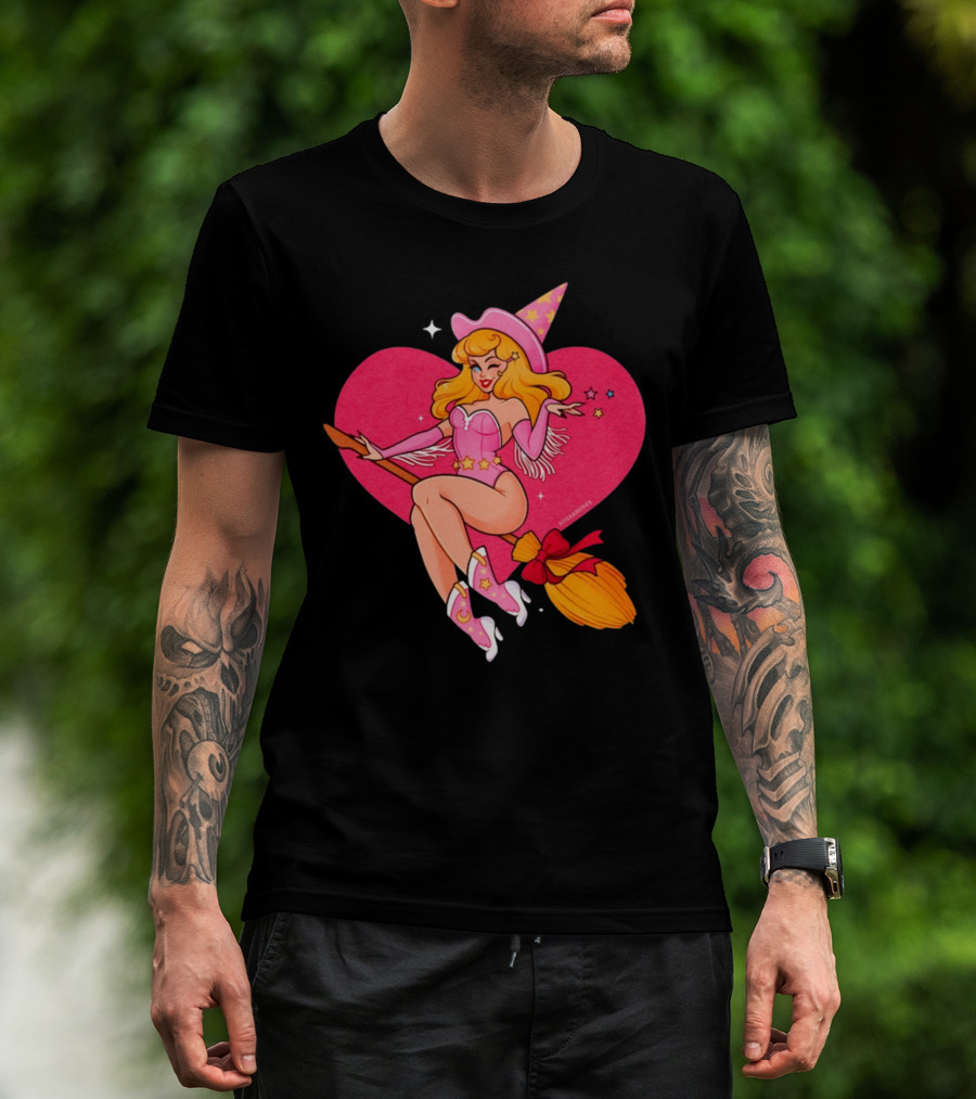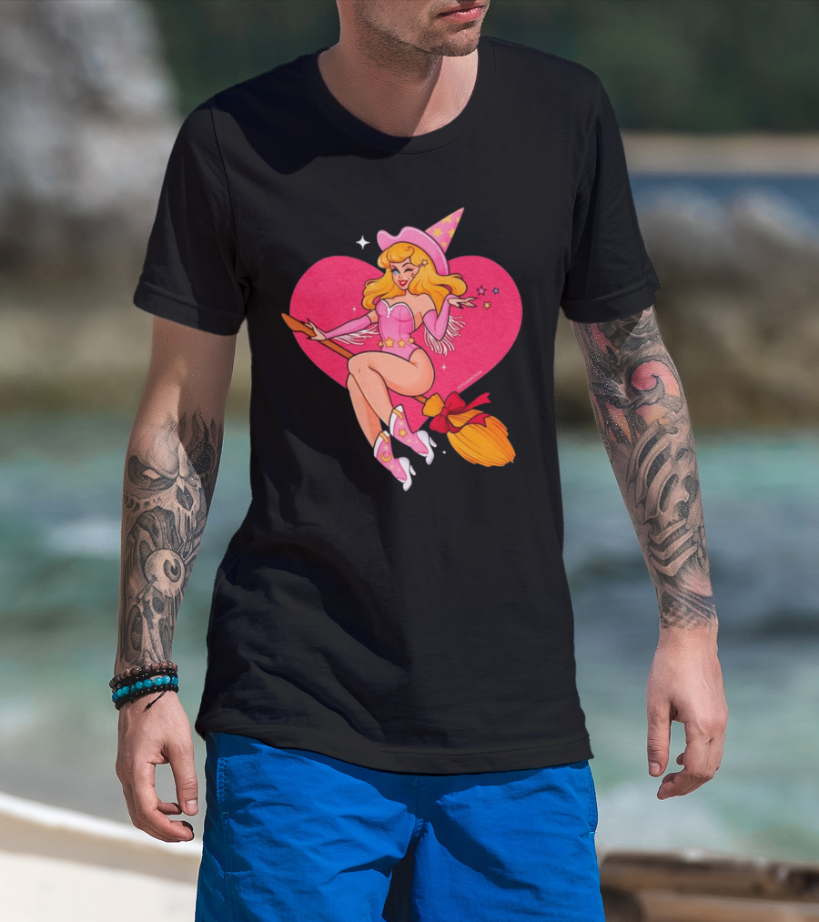 Sugarbones Barbie Witch Heart Pink Broomstick Stars T-Shirt