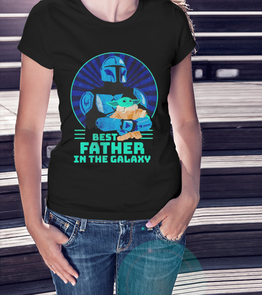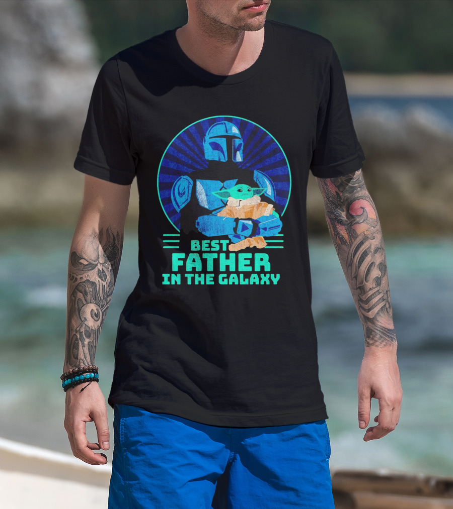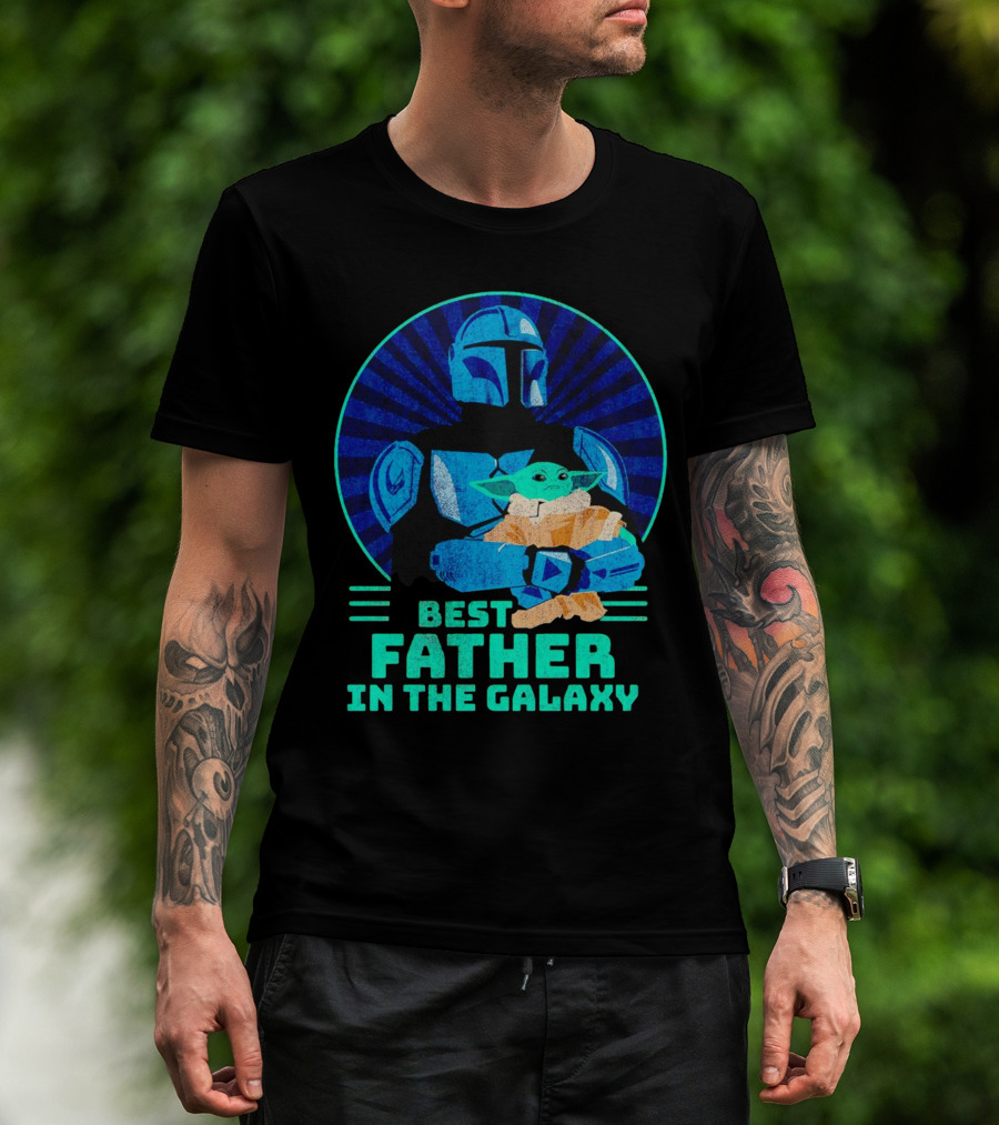 Best Father In The Galaxy Mandalorian Hug Baby Yoda T-Shirt