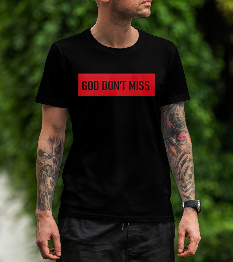 The God Don't Miss Bold Black Text T-shirt is designed for everyday wear and a consistent fit. Fabric is pre-shrunk ring-spun cotton with durable stitching. See the size chart below for exact measurements.