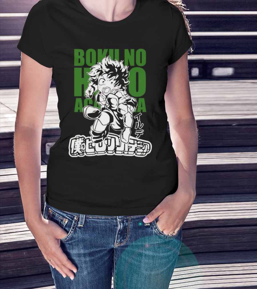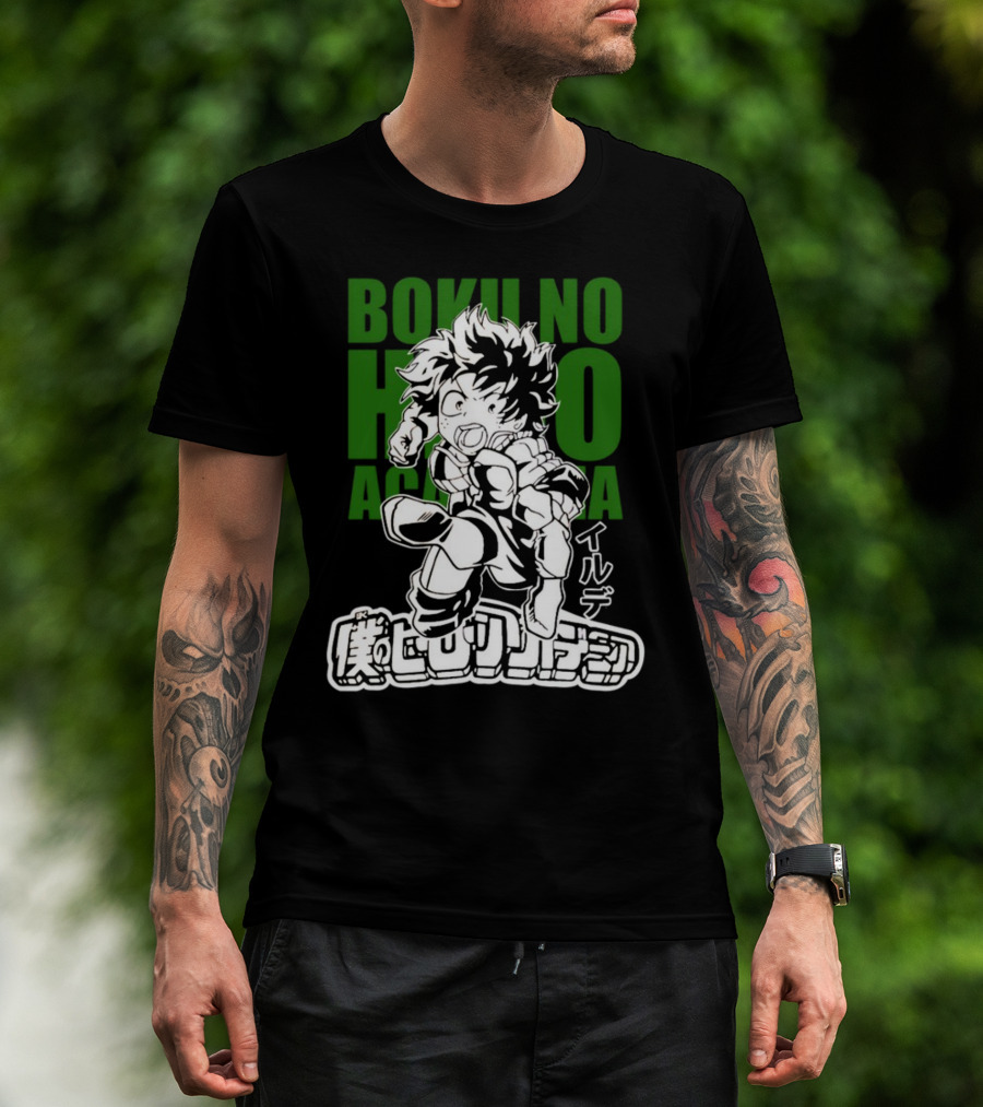 Boku No Hero Academia Manga Style Character Japanese Text T-Shirt