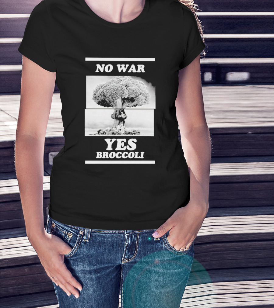The NO WAR YES BROCCOLI T-shirt is designed for everyday wear and a consistent fit. Fabric is pre-shrunk ring-spun cotton with durable stitching. See the size chart below for exact measurements.