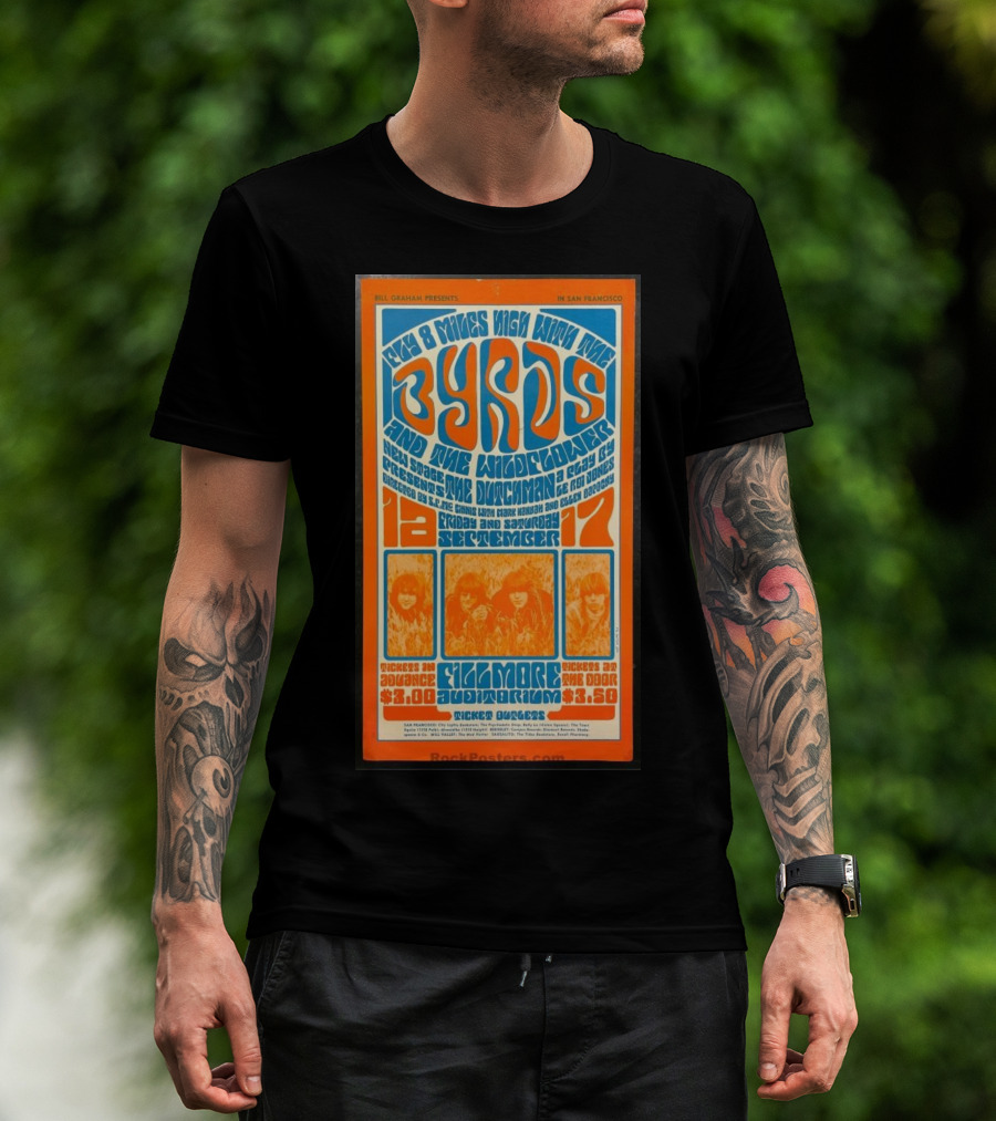 Bill Graham Presents Byrds And Wildflower September 1966 Fillmore Auditorium San Francisco T-Shirt