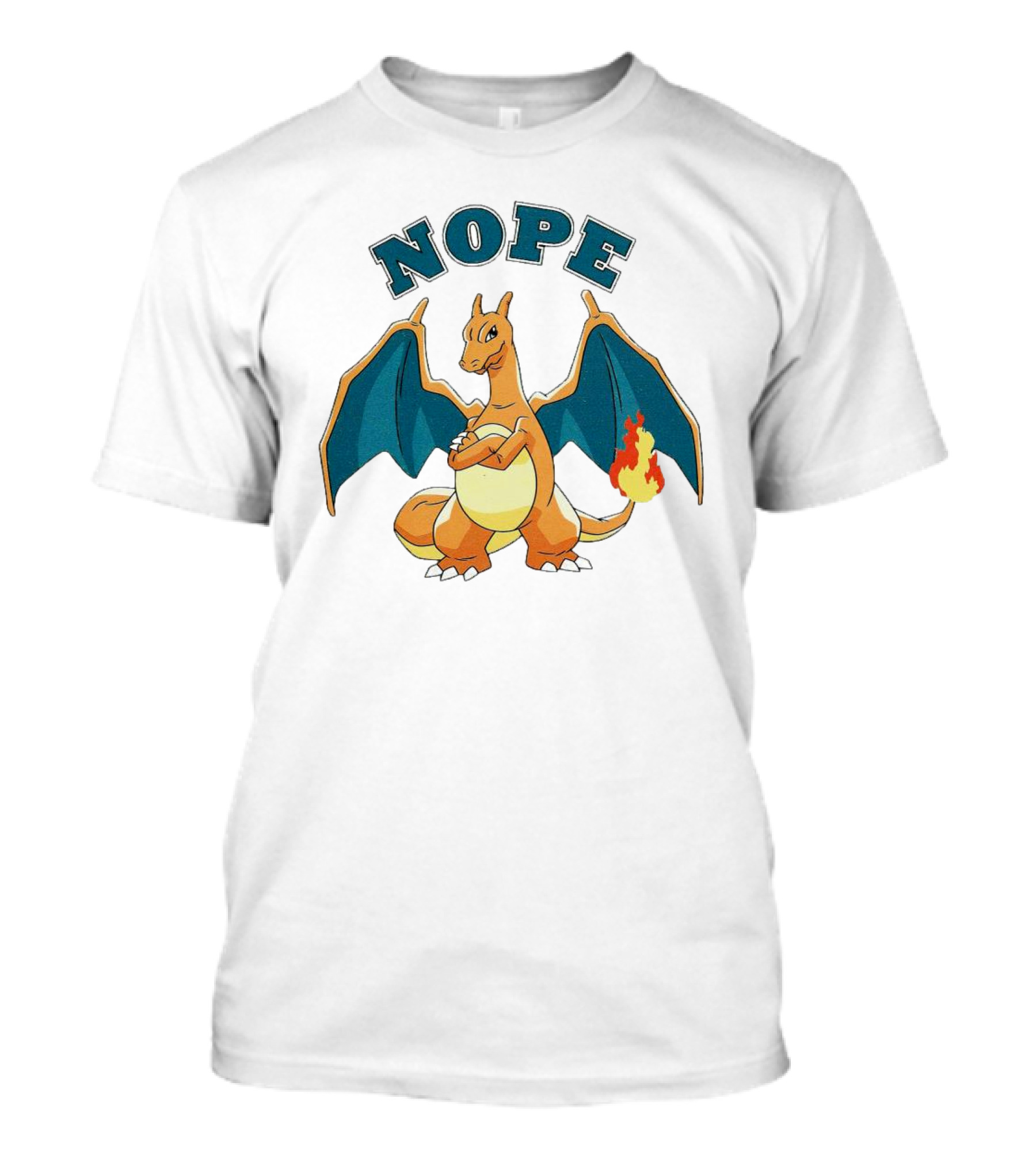 The Nope Charizard Pokemon Fan T-shirt is designed for everyday wear and a consistent fit. Fabric is pre-shrunk ring-spun cotton with durable stitching. See the size chart below for exact measurements.
