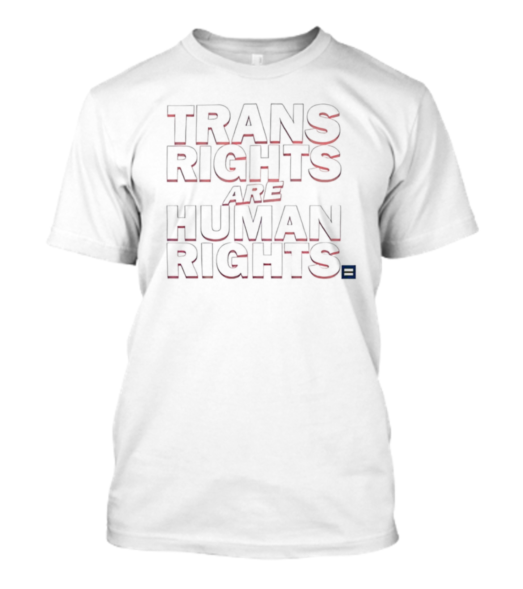 The Trans Rights Are Human Rights T-shirt is designed for everyday wear and a consistent fit. Fabric is pre-shrunk ring-spun cotton with durable stitching. See the size chart below for exact measurements.