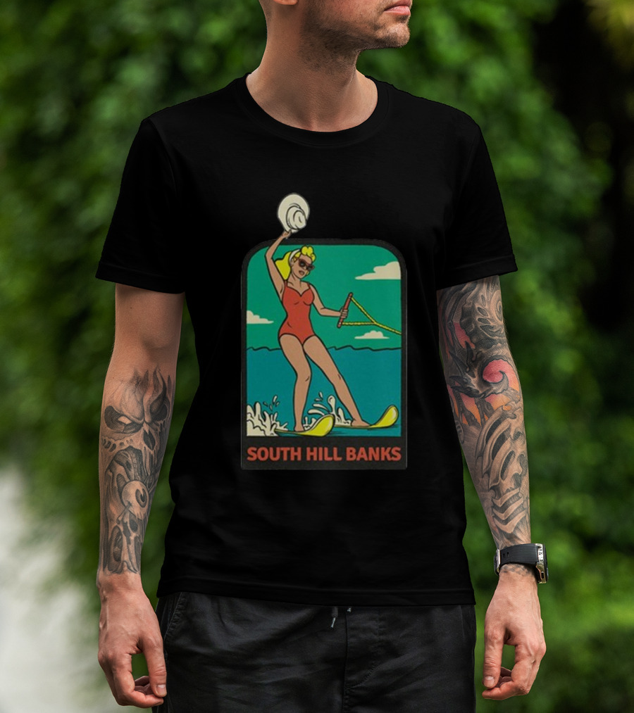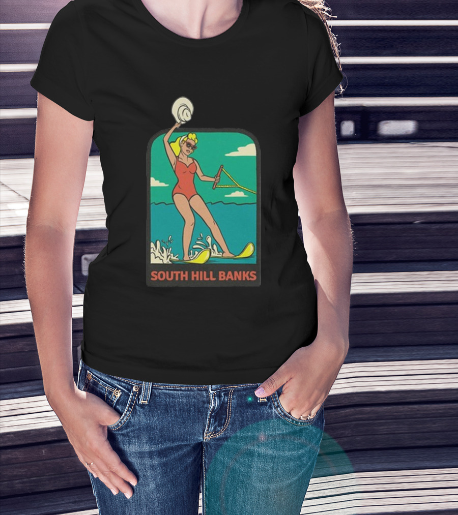 South Hill Banks Waterskiing Woman In Red Swimsuit T-Shirt