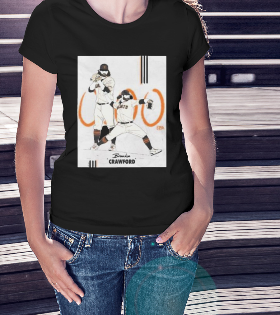 Brandon Crawford Giants Baseball Illustration With 1000 Celebratory T-Shirt