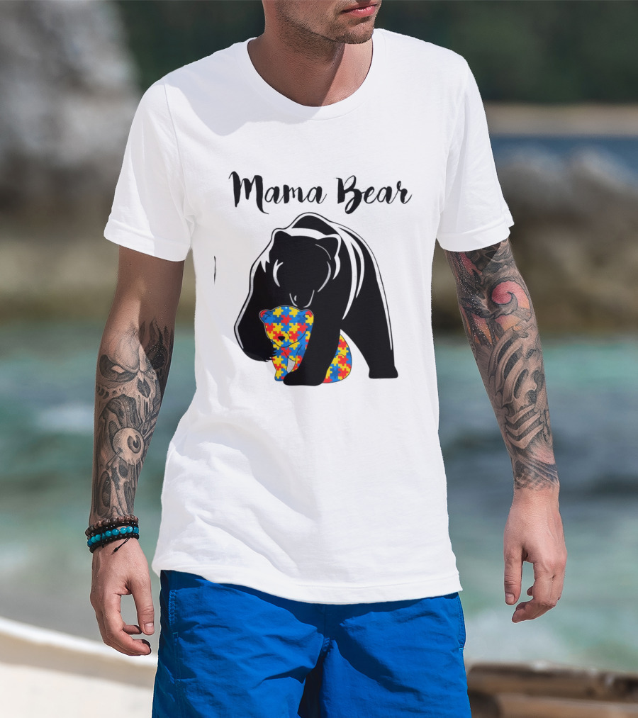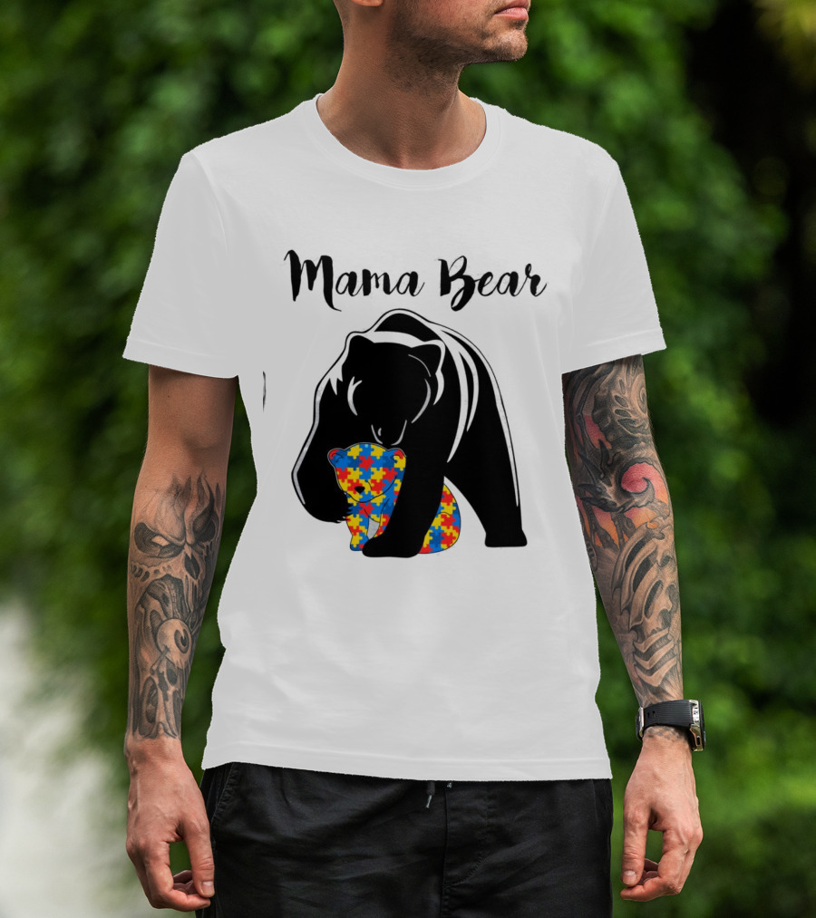 Mama Bear Autism Puzzle Piece Hug T-Shirt