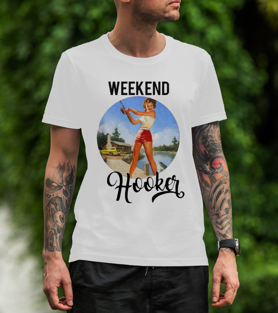 Weekend Hooker Fishing Girl Fan Artwork Retro Pin-Up T-Shirt