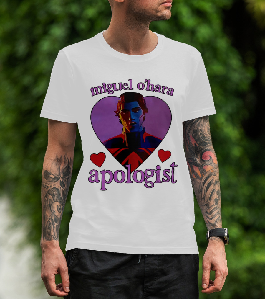 Miguel O’Hara Apologist Love Heart With Heroic Figure In Purple And Red Hearts T-Shirt