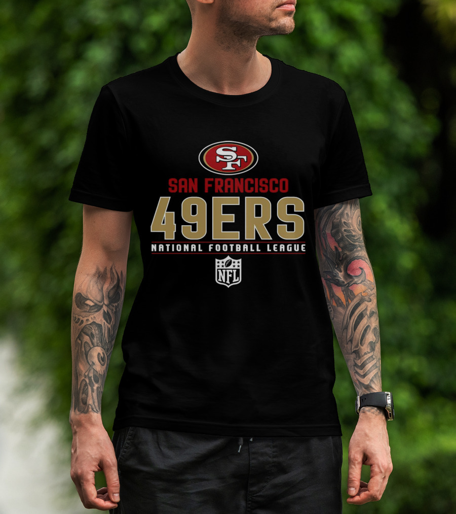 The San Francisco 49ers National Football League NFL T-shirt is designed for everyday wear and a consistent fit. Fabric is pre-shrunk ring-spun cotton with durable stitching. See the size chart below for exact measurements.