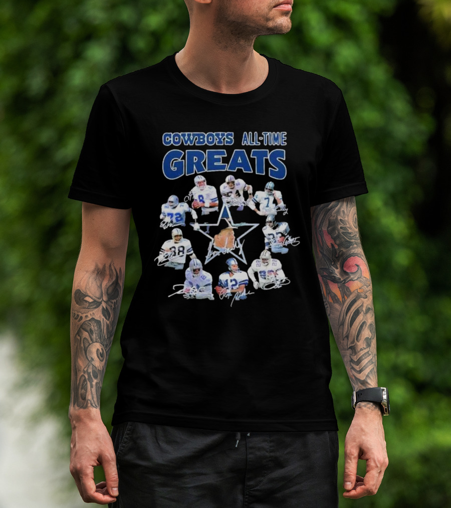 Cowboys All-Time Greats Players History Signatures T-Shirt