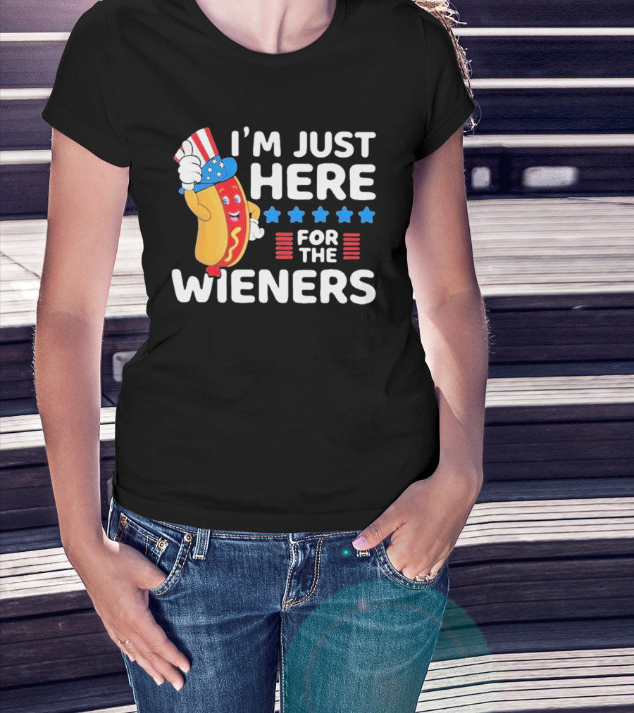 I'm Just Here For The Wieners Patriotic Hot Dog Uncle Sam Hat T-Shirt