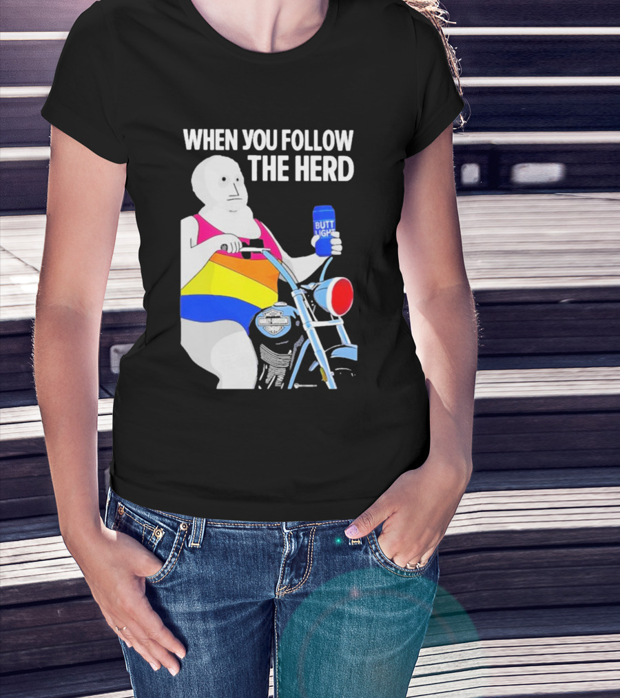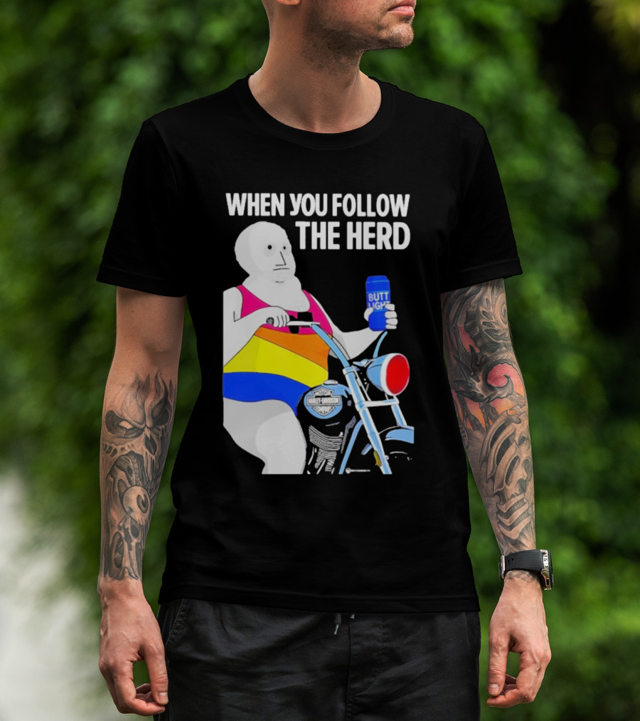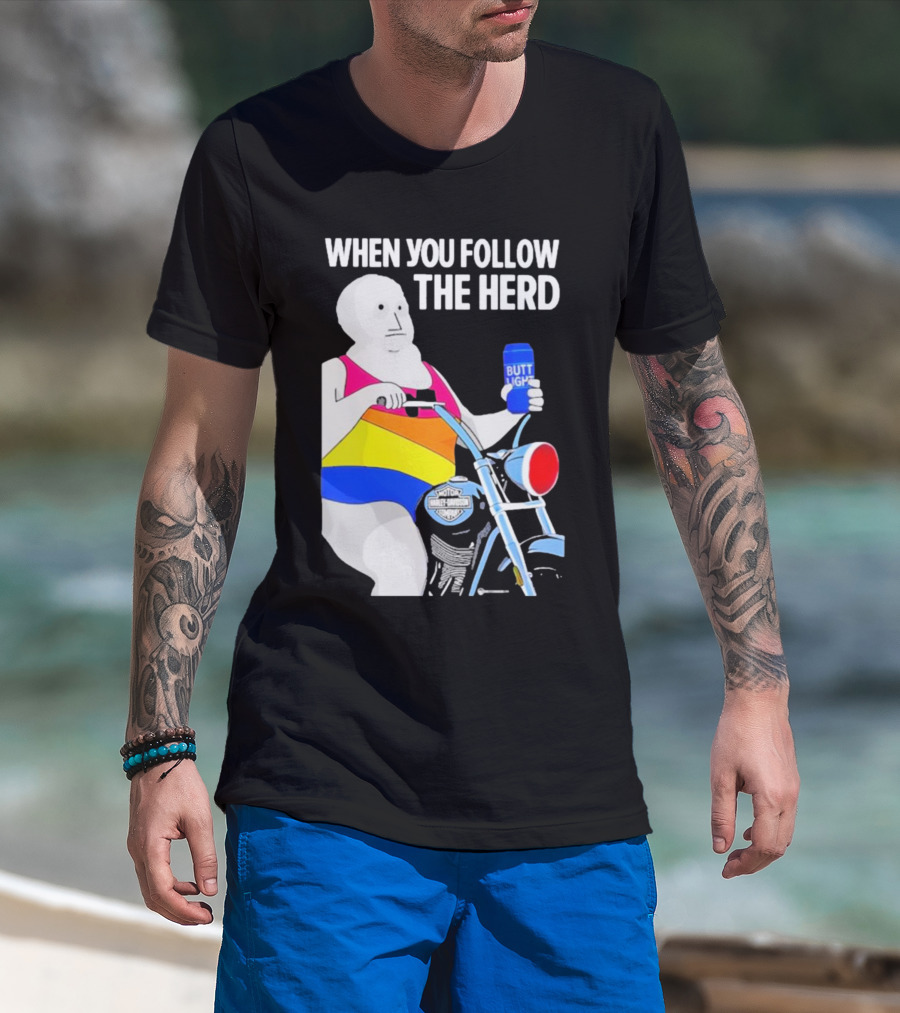 When You Follow The Herd Butt Light Motorcycle Rainbow T-Shirt