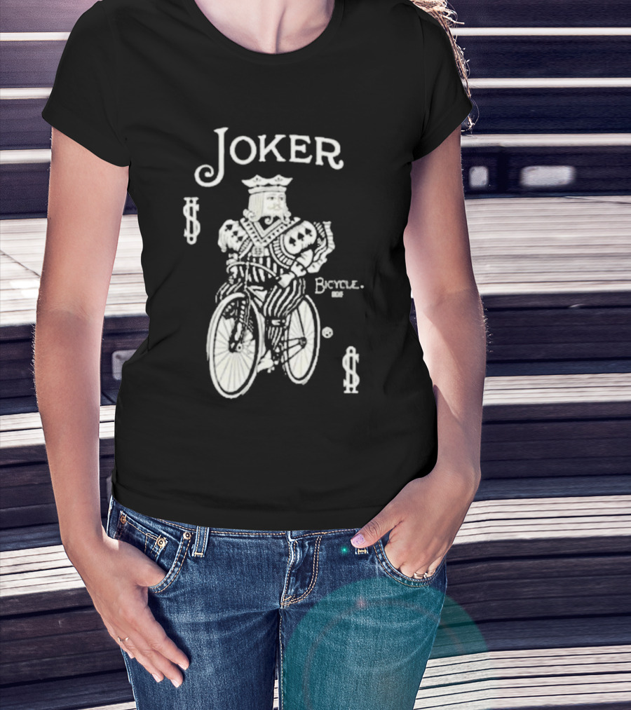 The Joker Bicycle Playing Card Company T-shirt is designed for everyday wear and a consistent fit. Fabric is pre-shrunk ring-spun cotton with durable stitching. See the size chart below for exact measurements.