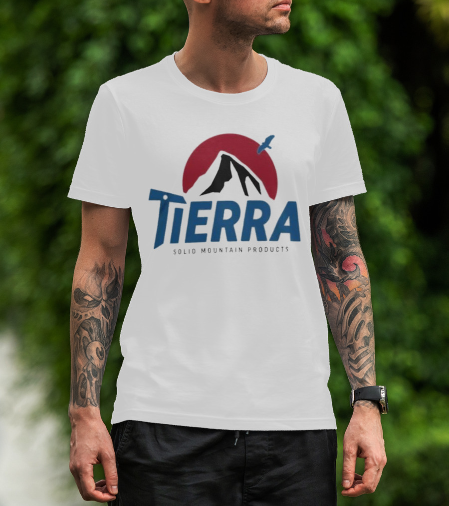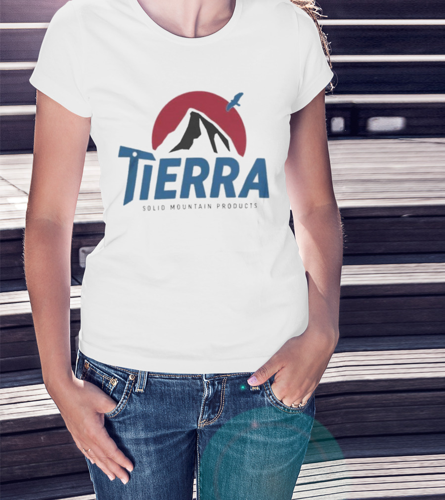 The Tierra Solid Mountain Products Red Sun Blue Bird T-shirt is designed for everyday wear and a consistent fit. Fabric is pre-shrunk ring-spun cotton with durable stitching. See the size chart below for exact measurements.