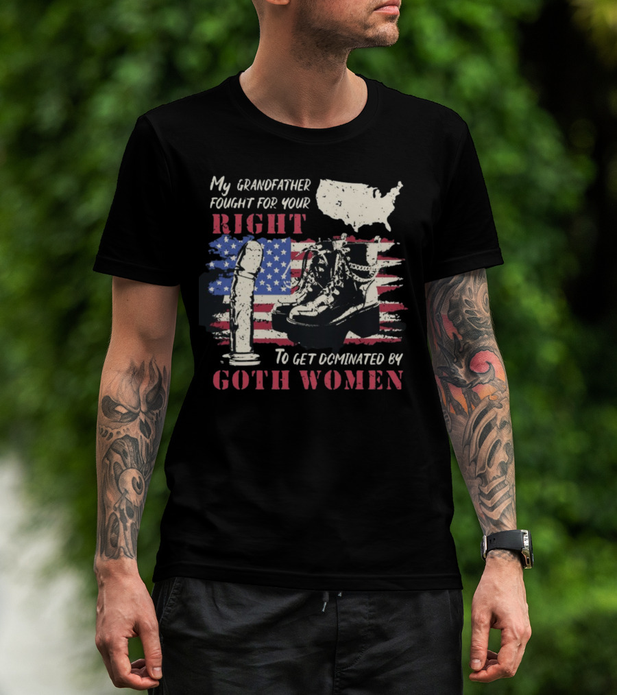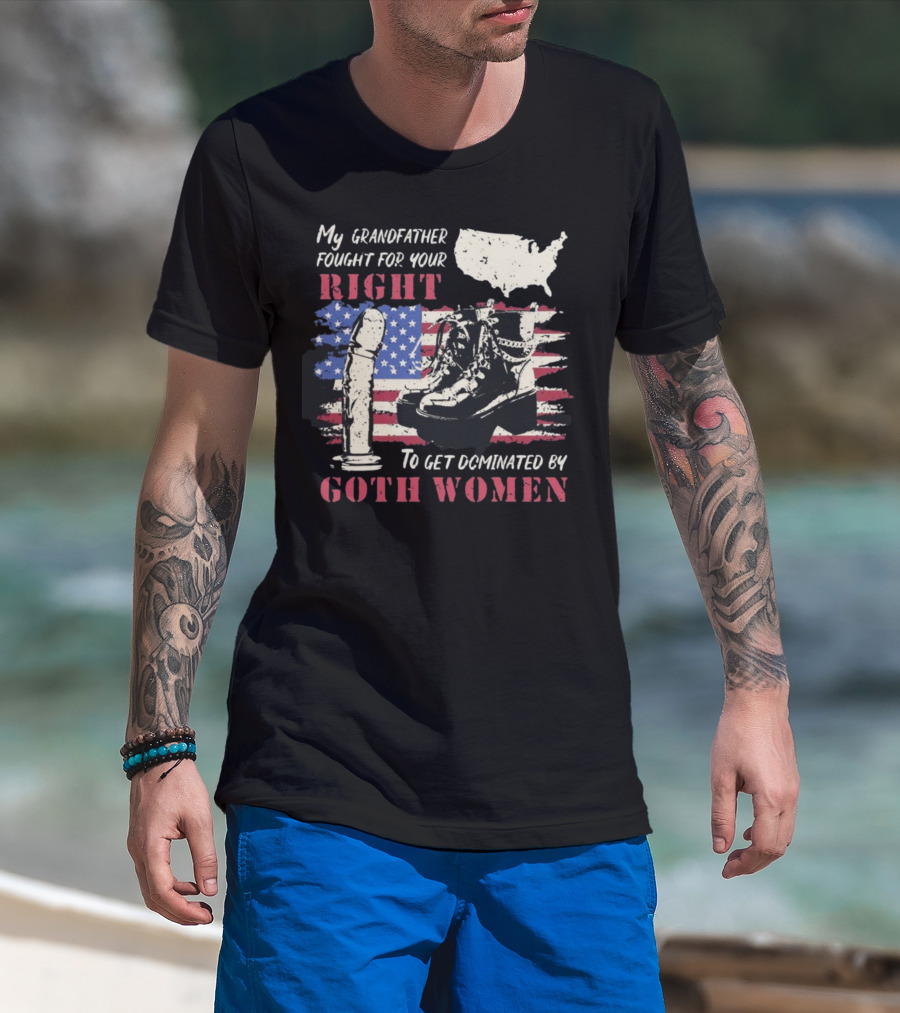 My Grandfather Fought For Your Right To Get Dominated By Goth Women USA Flag Combat Boots T-Shirt