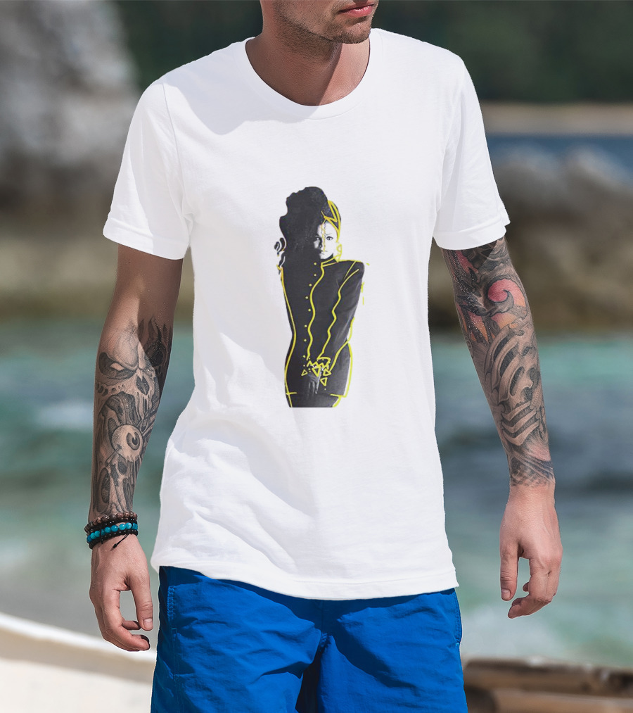The Janet Jackson Control Vinyl Album Art Iconic T-shirt is designed for everyday wear and a consistent fit. Fabric is pre-shrunk ring-spun cotton with durable stitching. See the size chart below for exact measurements.