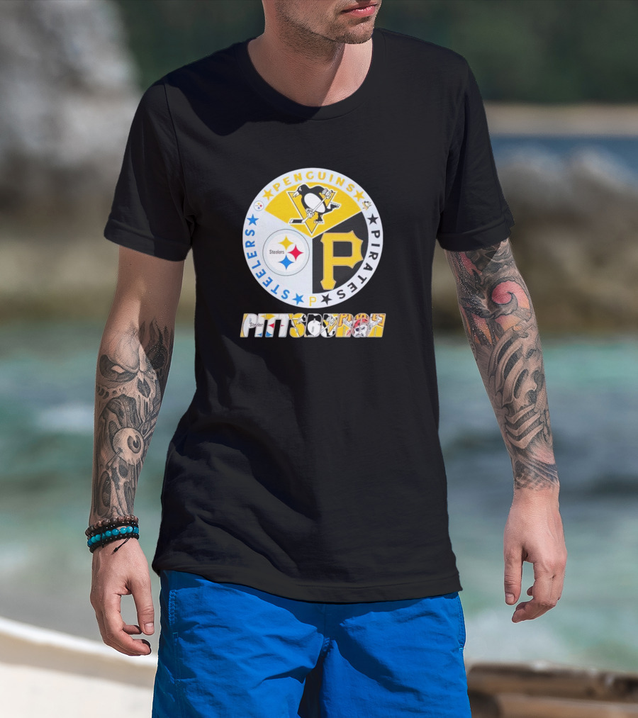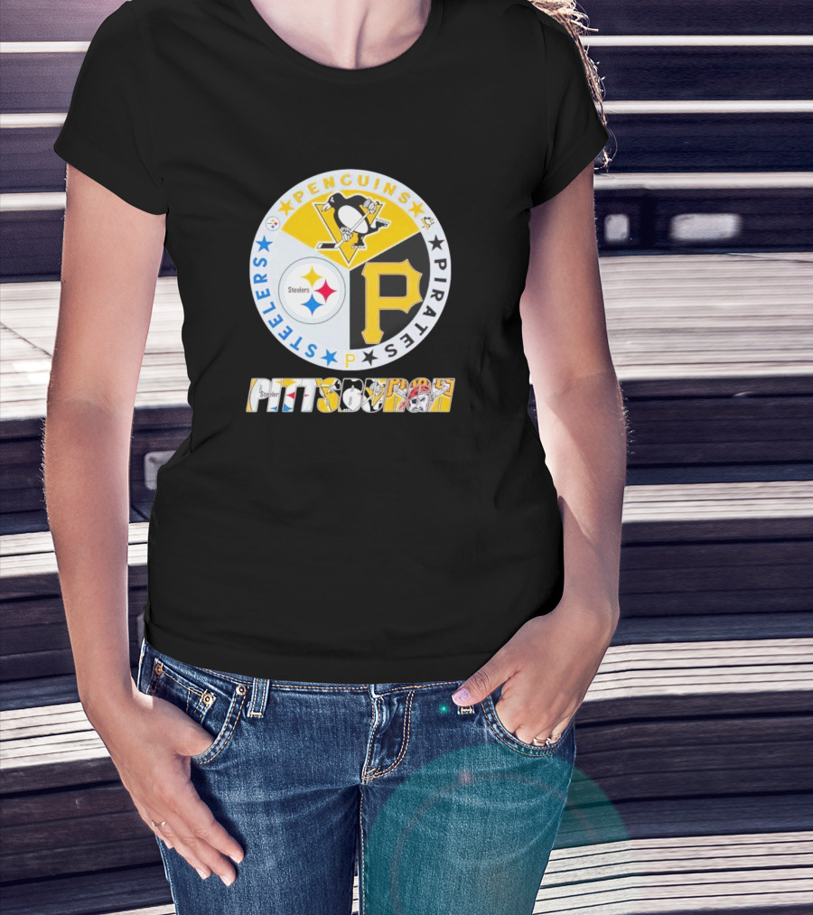 Penguins Steelers Pirates Pittsburgh Sports Team Logos Circle Badge T-Shirt