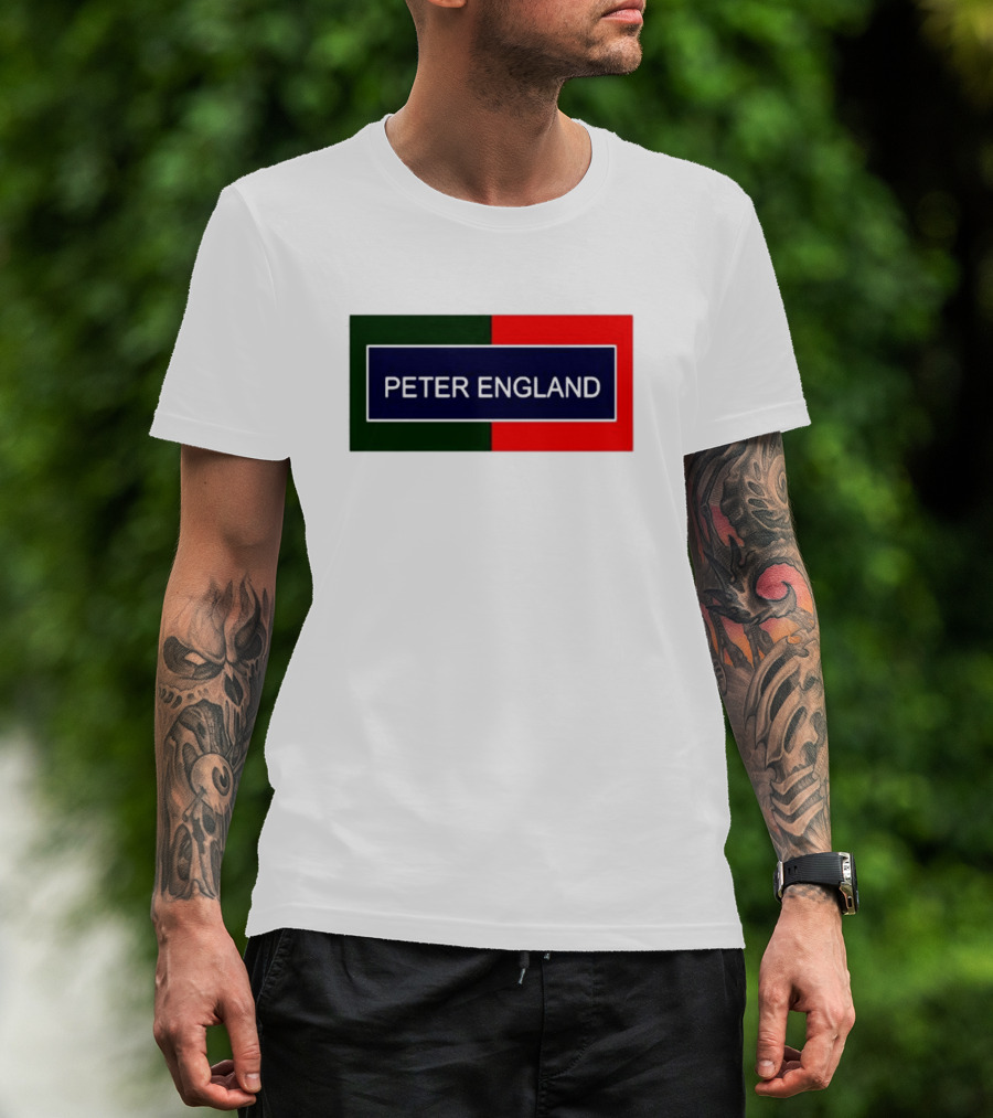 The PETER ENGLAND Black Background Rectangular Logo with Green and Red Blocks T-shirt is designed for everyday wear and a consistent fit. Fabric is pre-shrunk ring-spun cotton with durable stitching. See the size chart below for exact measurements.