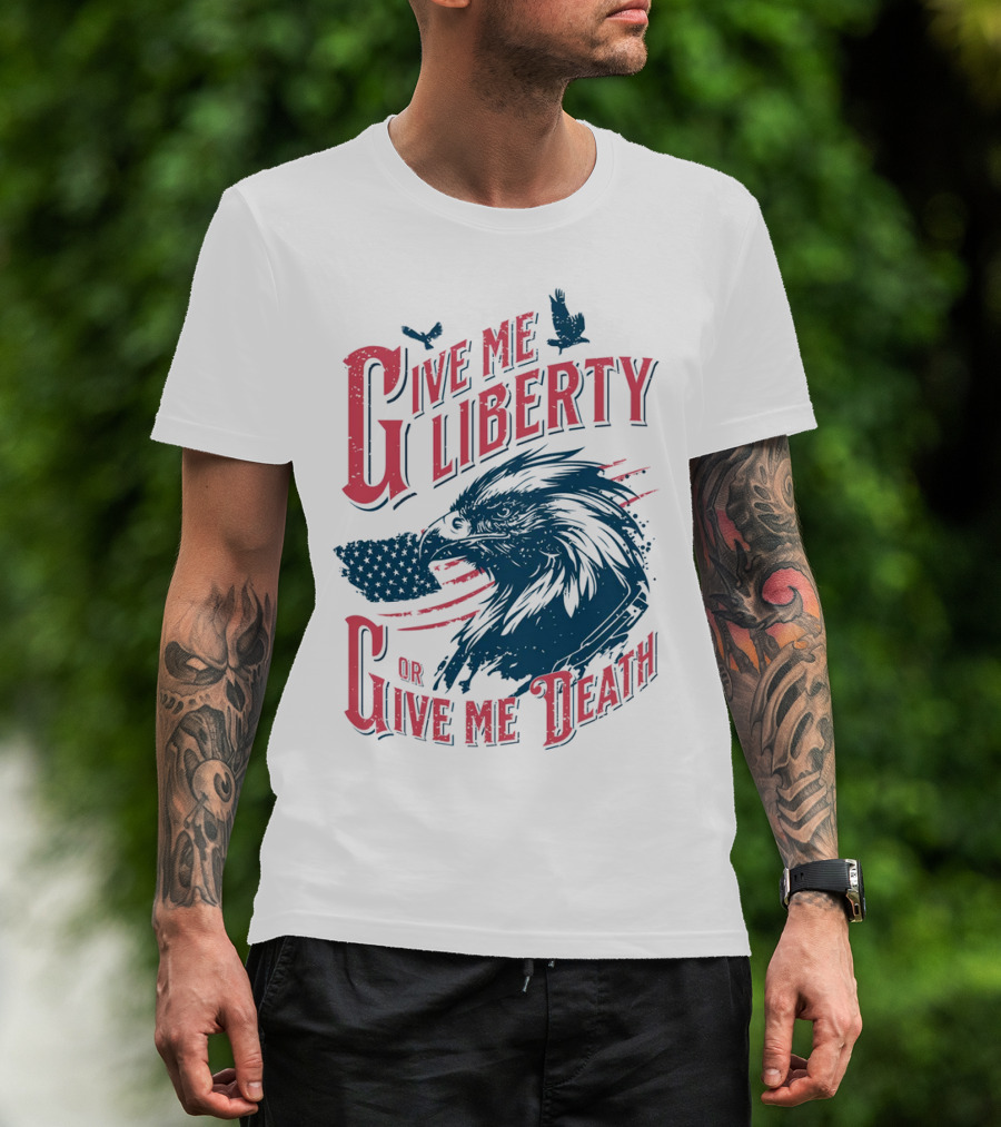 Give Me Liberty Or Give Me Death Eagle American Flag Patriotic T-Shirt