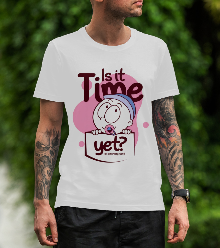 Is It Time Yet I Am Pregnant Baby Pacifier Cartoon T-Shirt