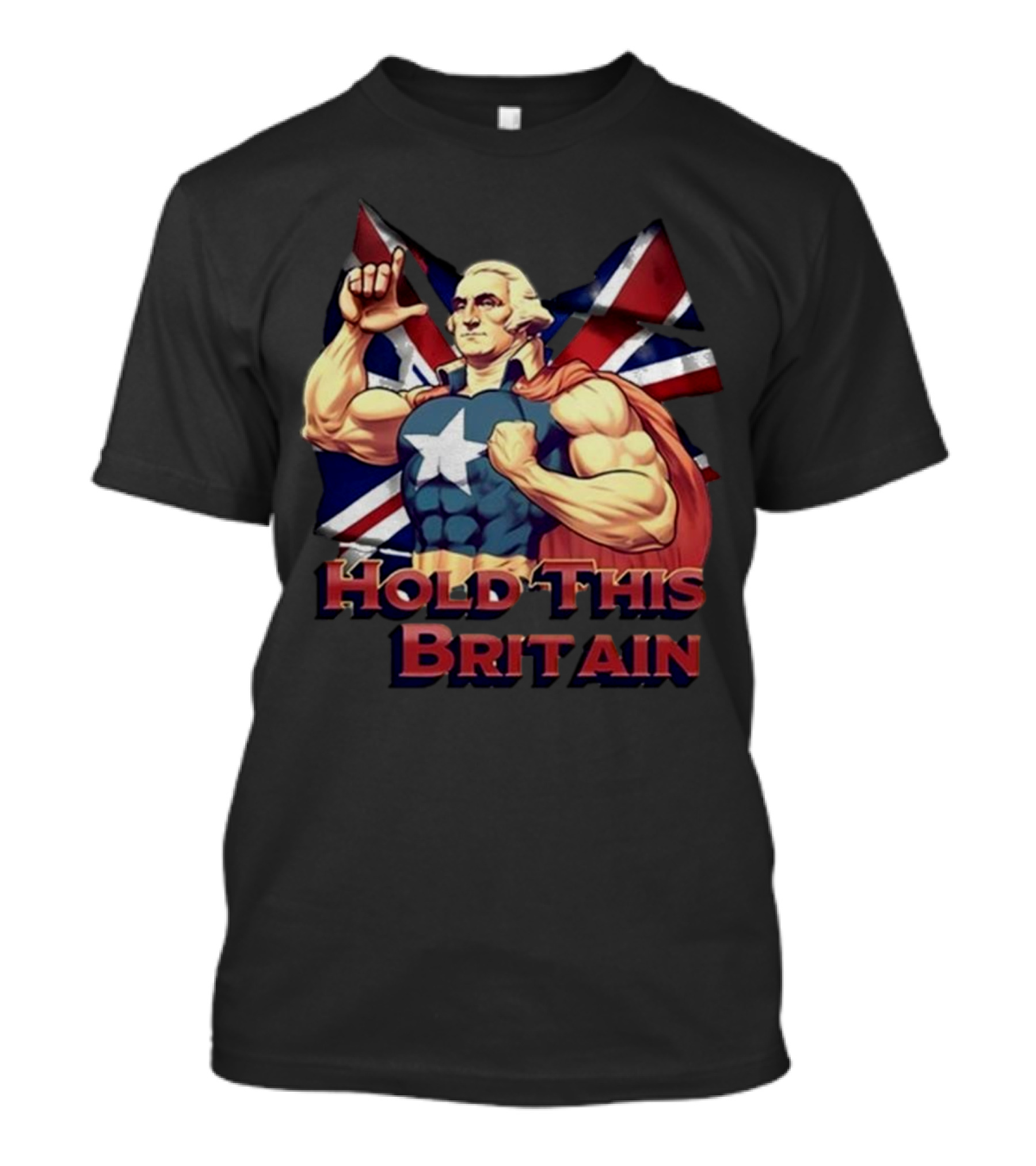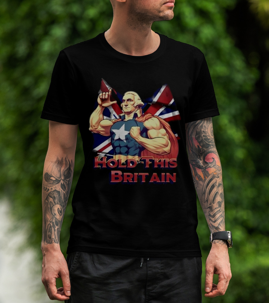 Trashcan Paul Hold This L Britain Captain Parody George Washington Union Jack Flag T-Shirt