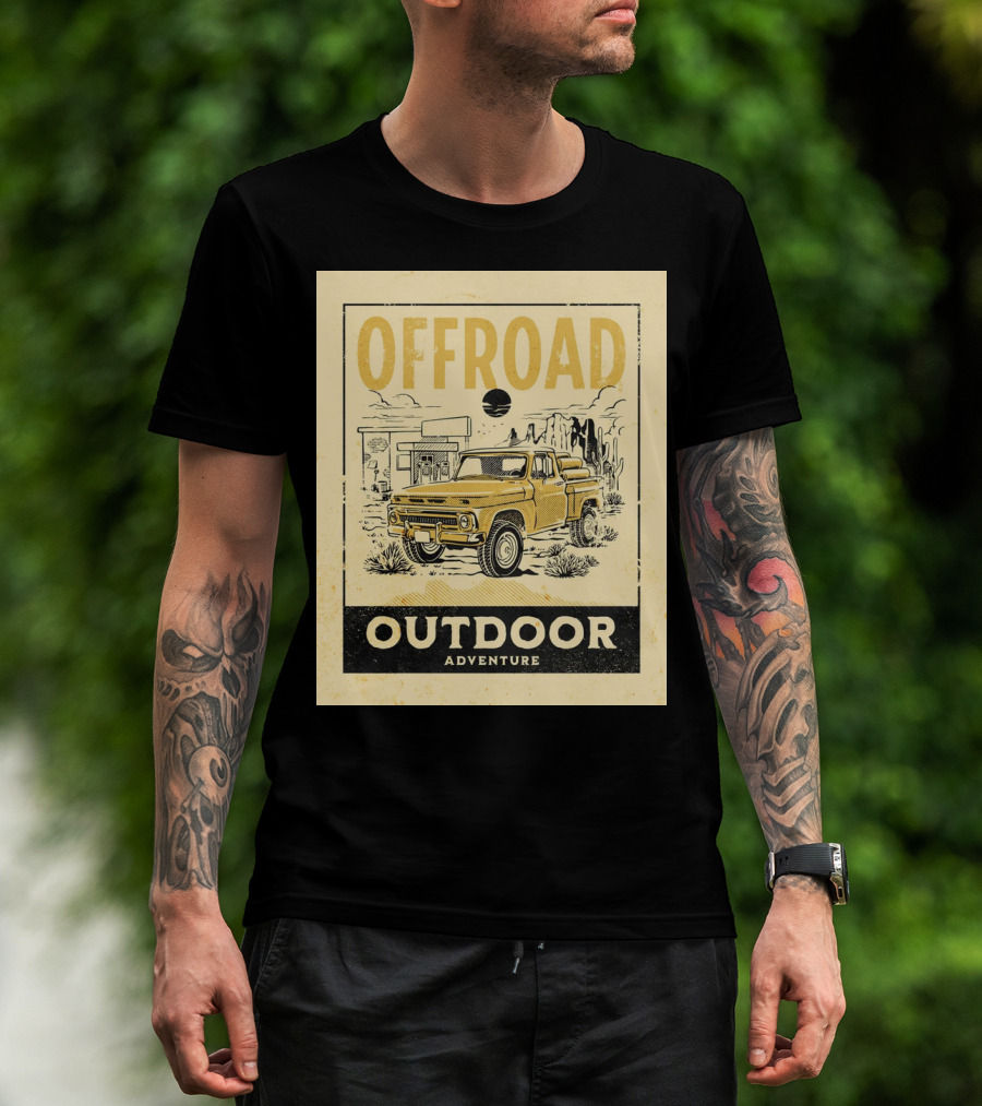 The Offroad Outdoor Adventure Pickup Truck T-shirt is designed for everyday wear and a consistent fit. Fabric is pre-shrunk ring-spun cotton with durable stitching. See the size chart below for exact measurements.