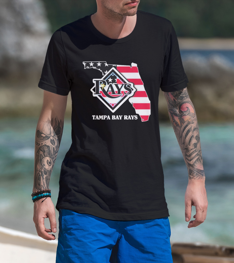 Tampa Bay Rays Florida American Flag Map T-Shirt