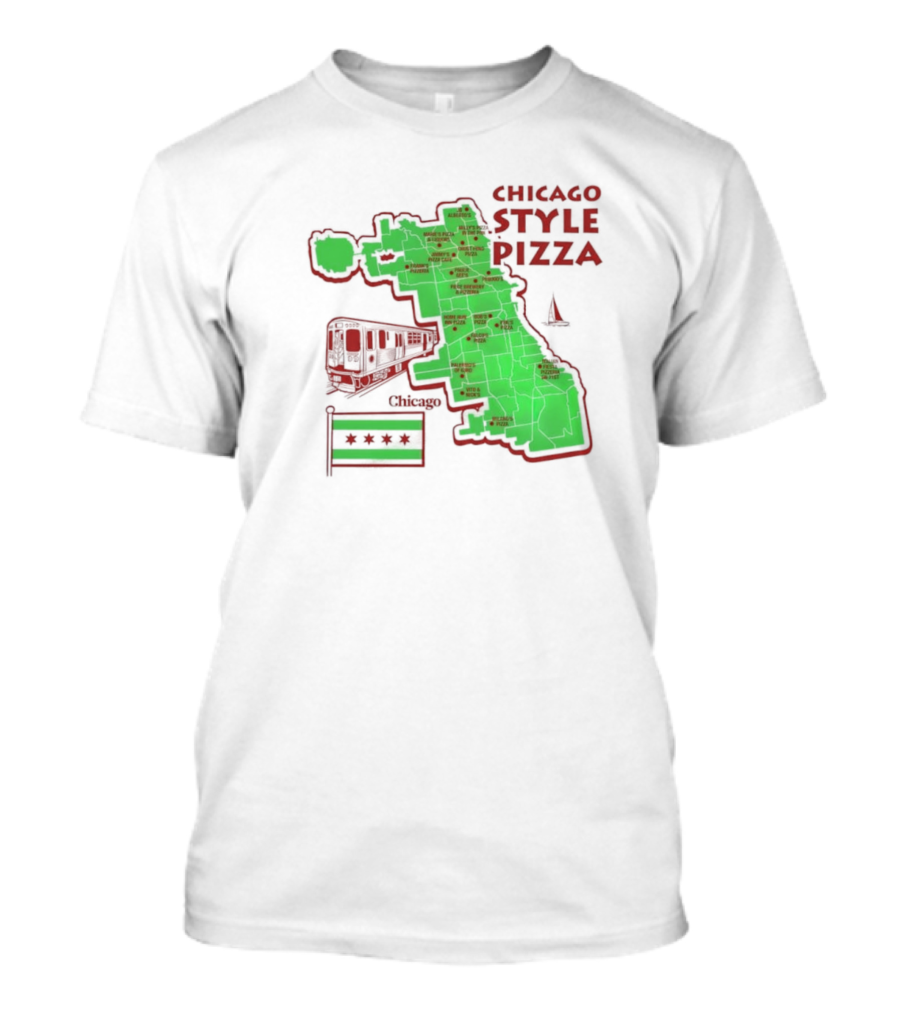 Chicago Style Pizza Map With Train And City Flag T-Shirt