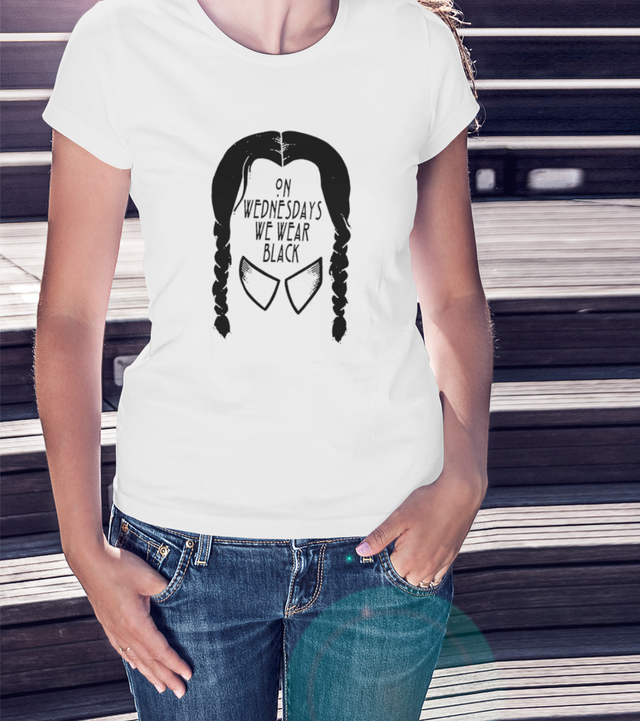 On Wednesdays We Wear Black Braided Hair Collar T-Shirt