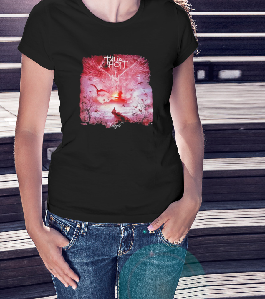 Talia Hoit Angel Red Winged Figure With Birds And Sunset T-Shirt