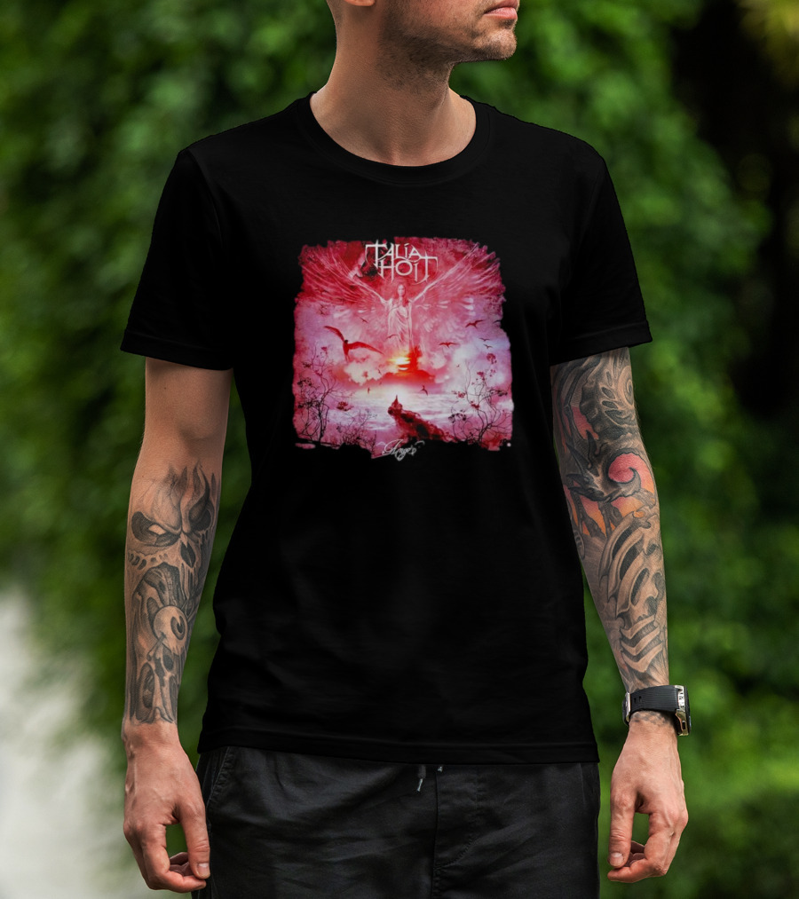 The Talia Hoit Angel Red Winged Figure with Birds and Sunset T-shirt is designed for everyday wear and a consistent fit. Fabric is pre-shrunk ring-spun cotton with durable stitching. See the size chart below for exact measurements.