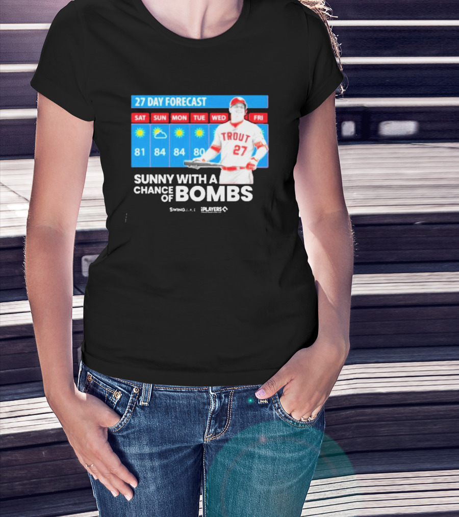 Trout 27 Day Forecast Sunny With A Chance Of Bombs Players Swing T-Shirt