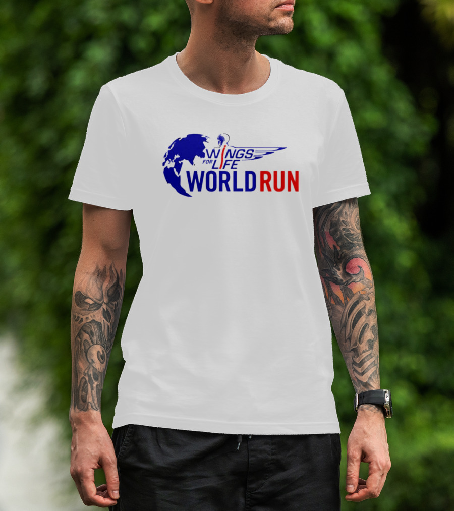 Wings For Life World Run Blue And Red Globe And Wings T-Shirt