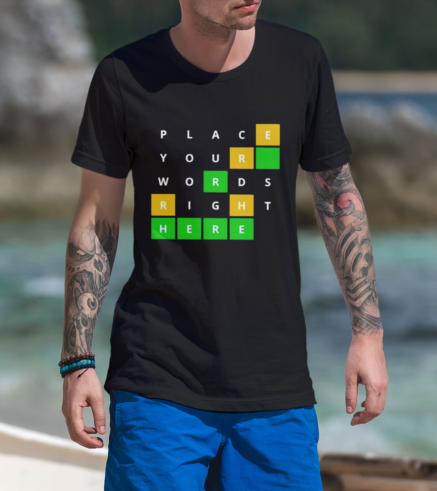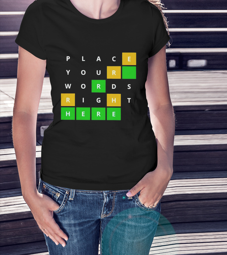 The Place Your Words Right Here Wordle T-shirt is designed for everyday wear and a consistent fit. Fabric is pre-shrunk ring-spun cotton with durable stitching. See the size chart below for exact measurements.