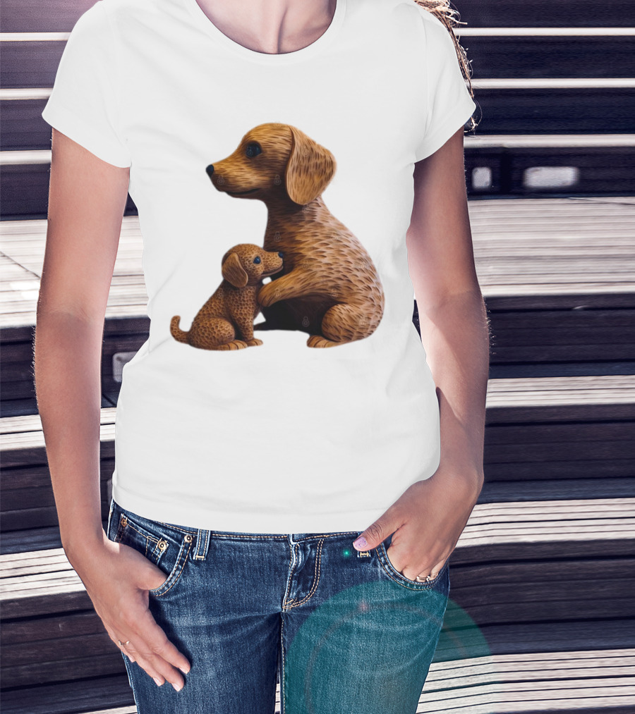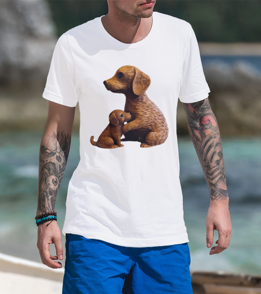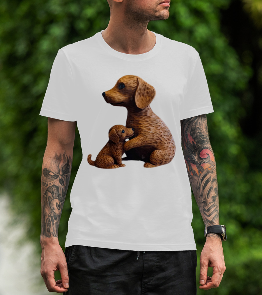 Dog Carvings Parent And Puppy Figurines T-Shirt