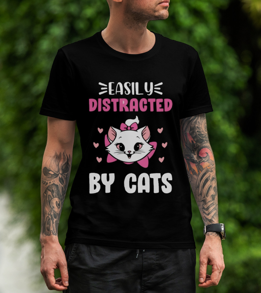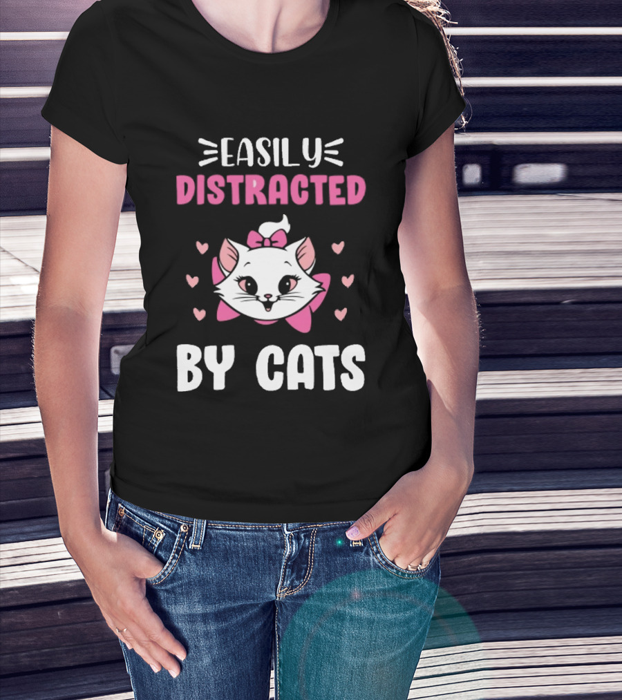Easily Distracted By Cats Cute Kitten With Pink Bow And Hearts T-Shirt