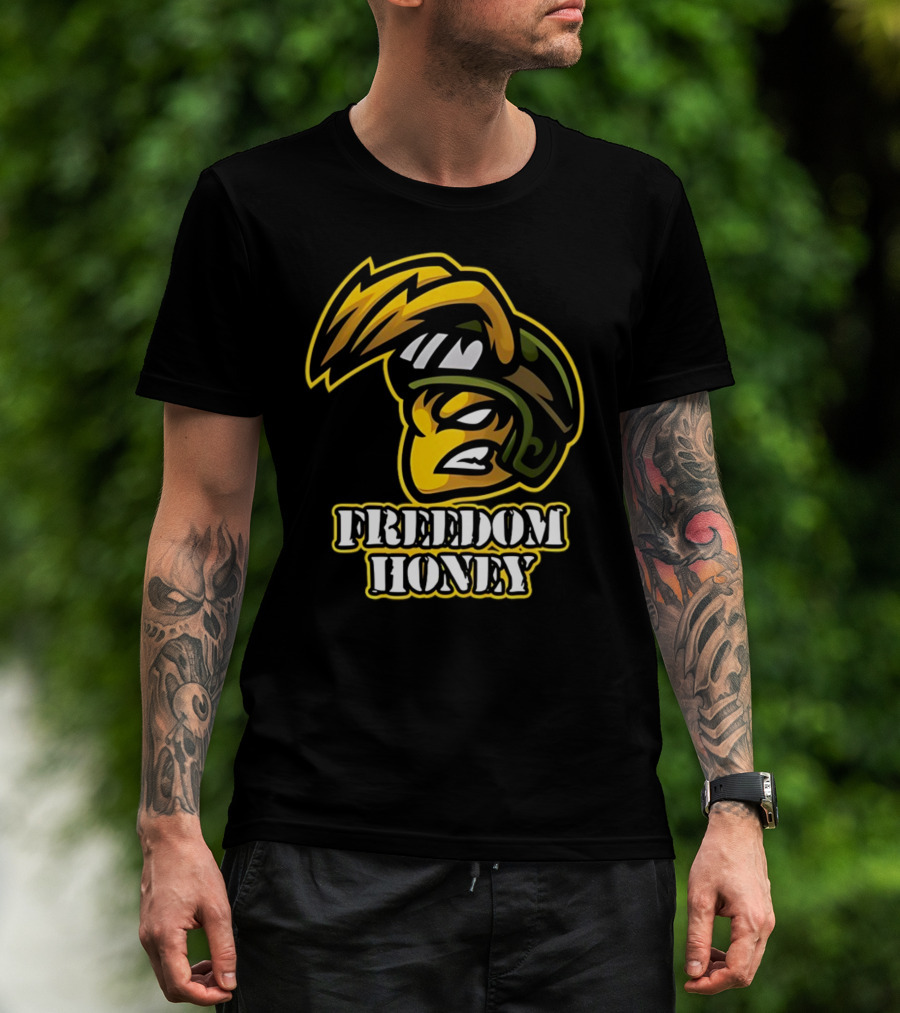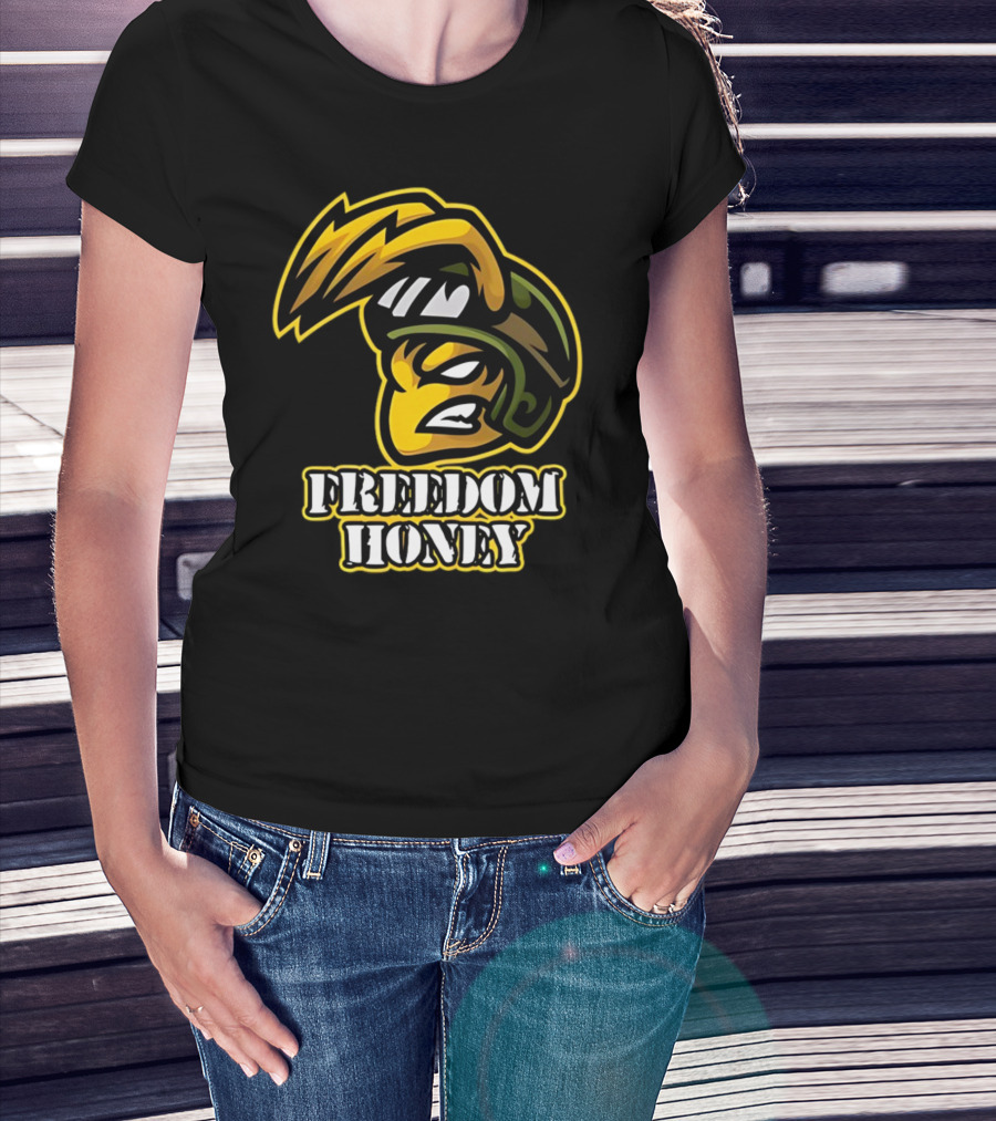 Freedom Honey Angry Yellow Cartoon Soldier Helmet T-Shirt
