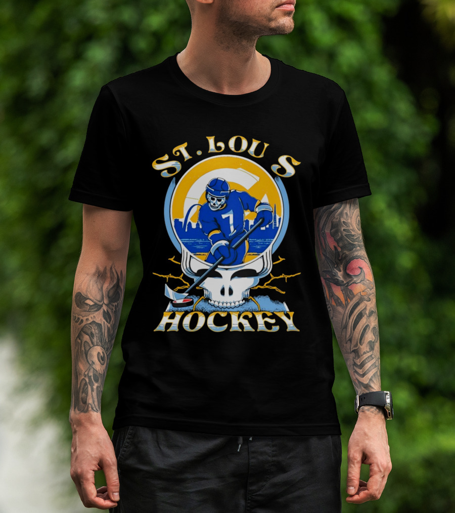 St Louis Hockey Grateful Dead Inspired Skeleton Playing Hockey T-Shirt