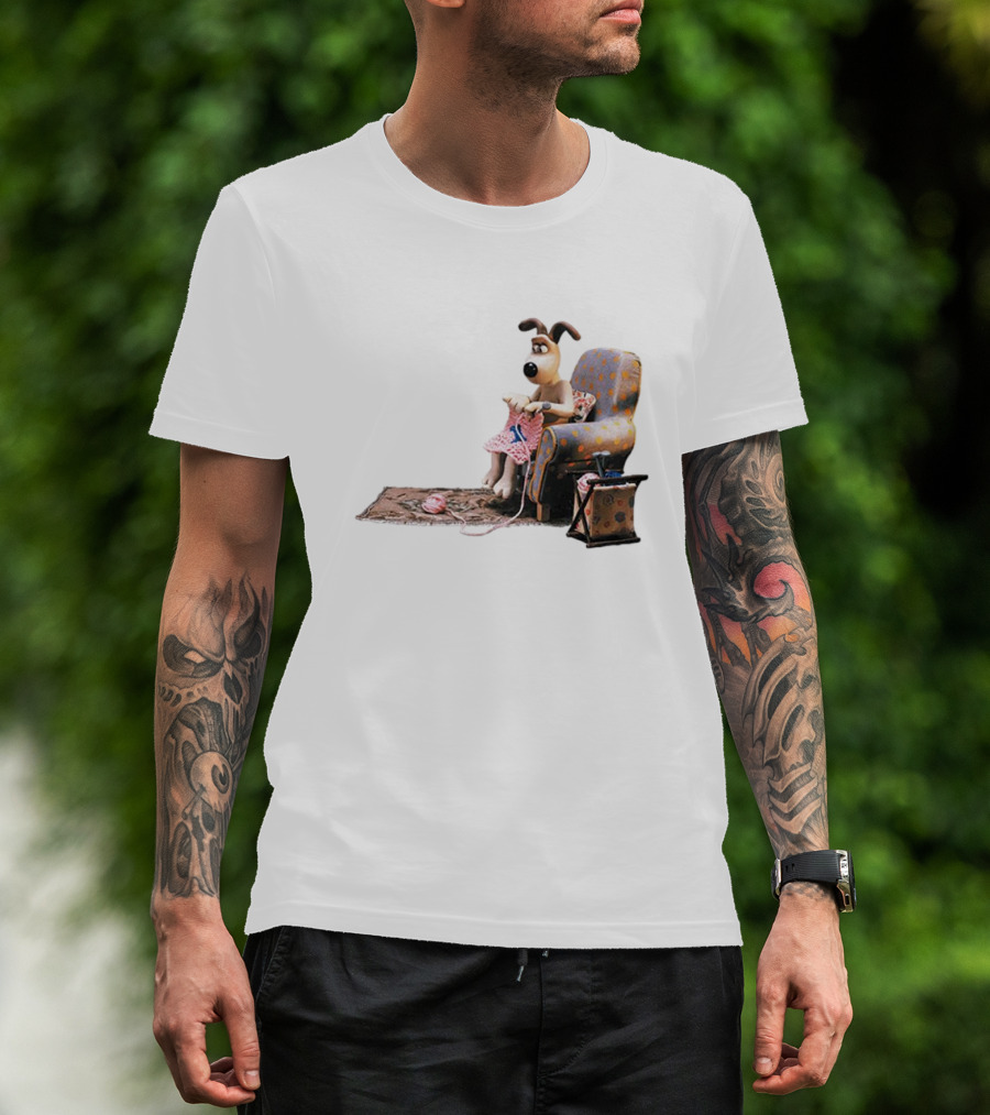 Wallace And Gromit Gromit Knitting In Armchair With Yarn Basket T-Shirt