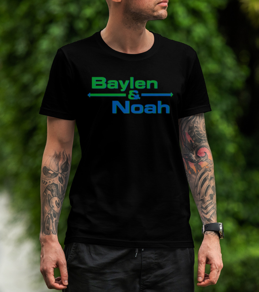 The Baylenlevine Baylen and Noah Arrows Green Blue T-shirt is designed for everyday wear and a consistent fit. Fabric is pre-shrunk ring-spun cotton with durable stitching. See the size chart below for exact measurements.