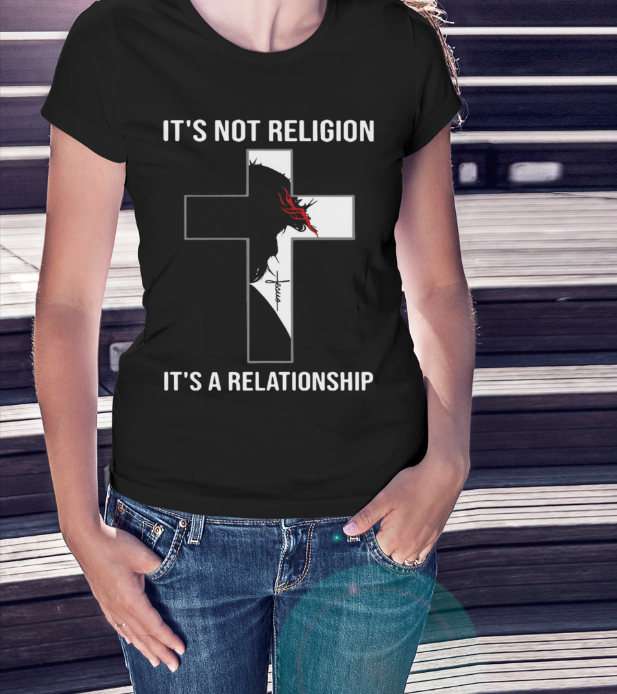 Cross Jesus It's Not Religion It's A Relationship With Silhouette And Crown Of Thorns T-Shirt