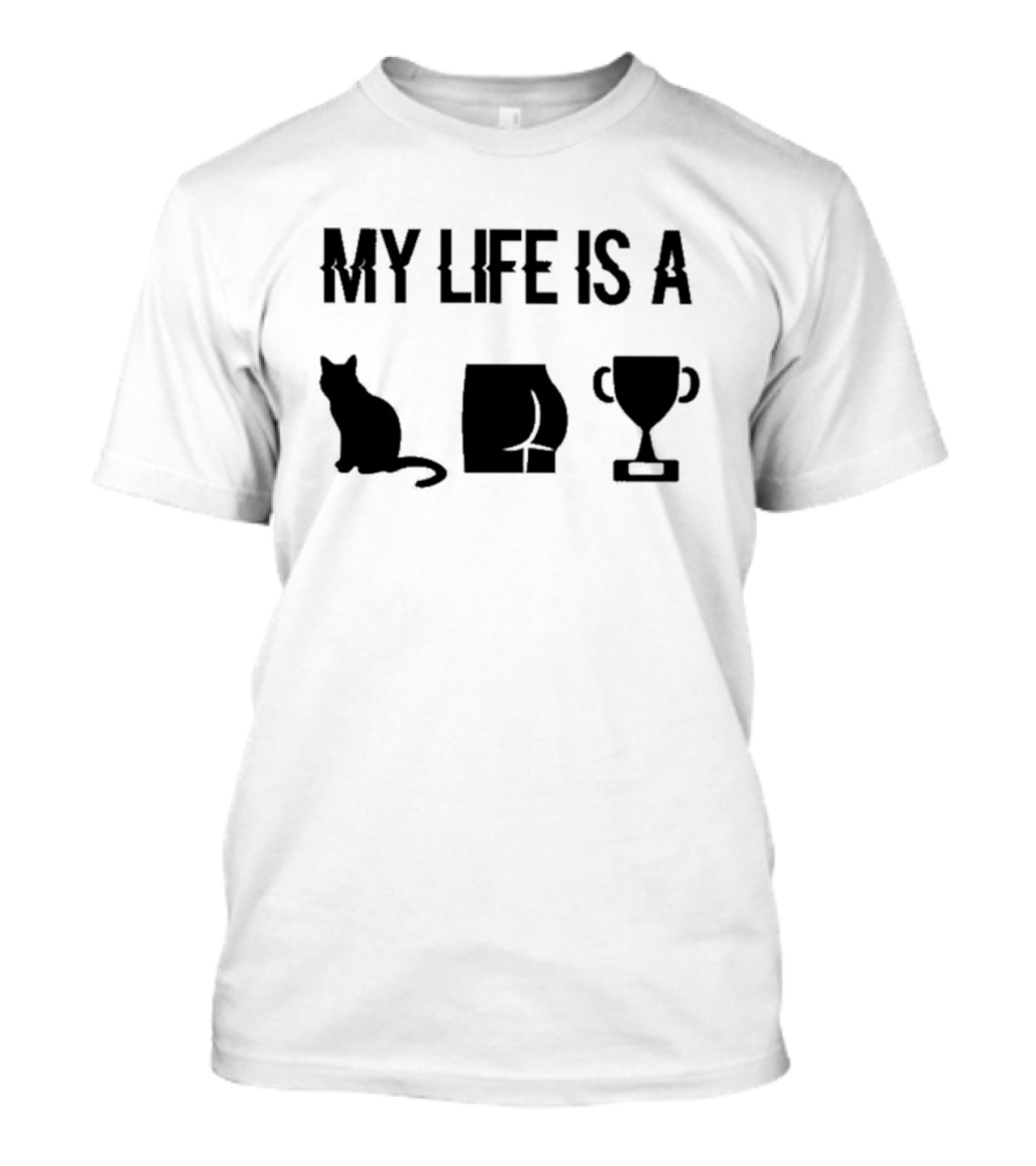 The Cat Ass Trophy My Life Is T-shirt is designed for everyday wear and a consistent fit. Fabric is pre-shrunk ring-spun cotton with durable stitching. See the size chart below for exact measurements.