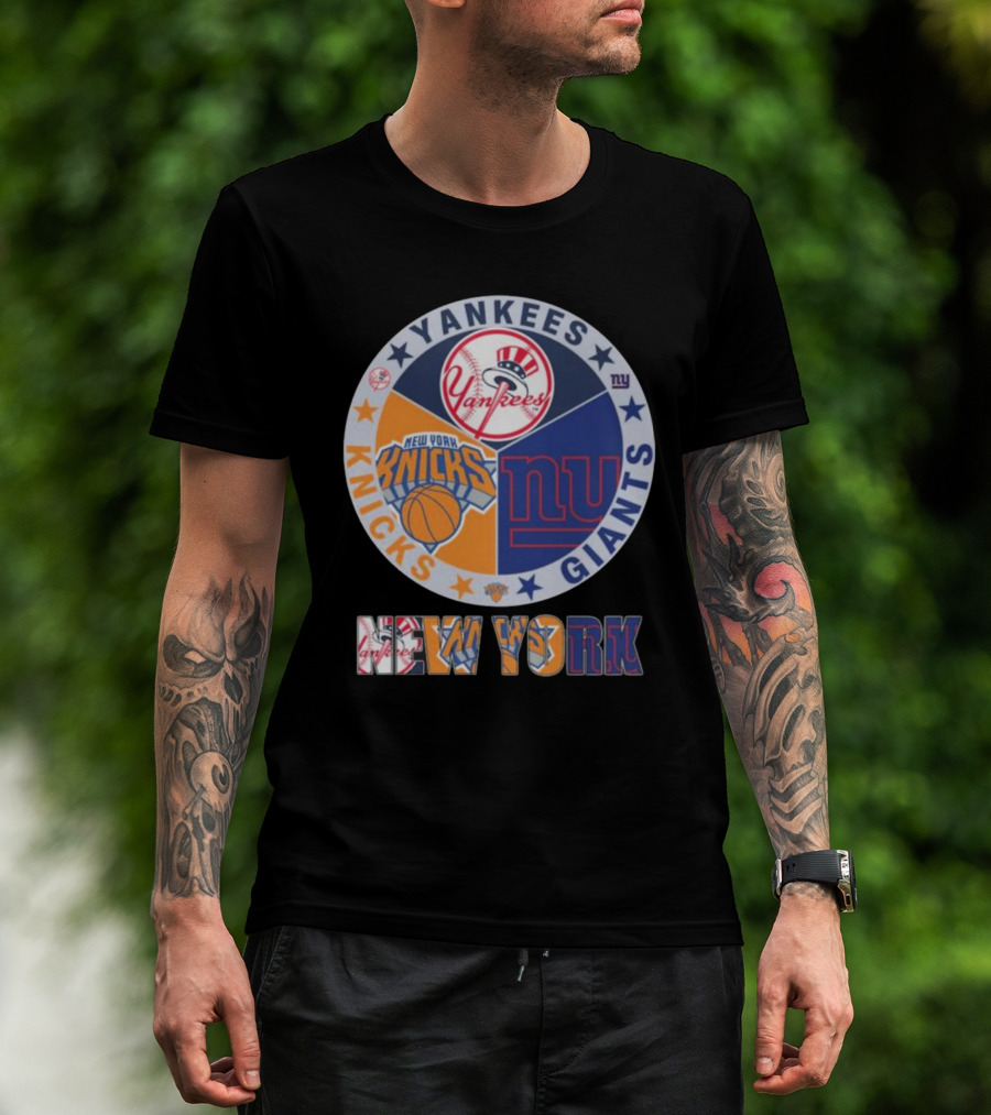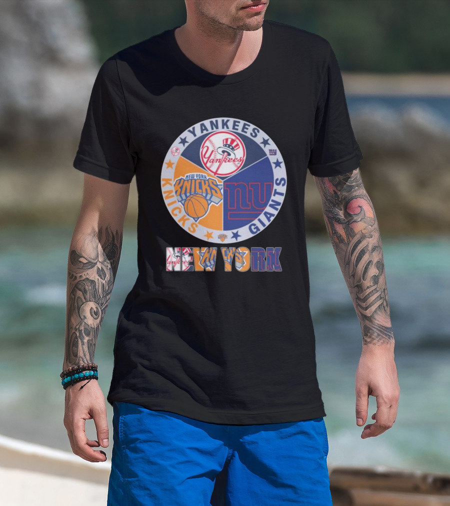 Yankees Knicks Giants New York Sports Logos Basketball Baseball Football T-Shirt